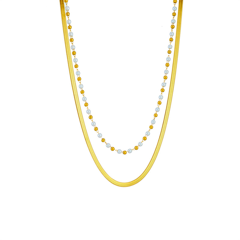 Home > New Arrival > Creative unique irregular metal beaded chain titanium steel flat snake chain high-end double layer necklace