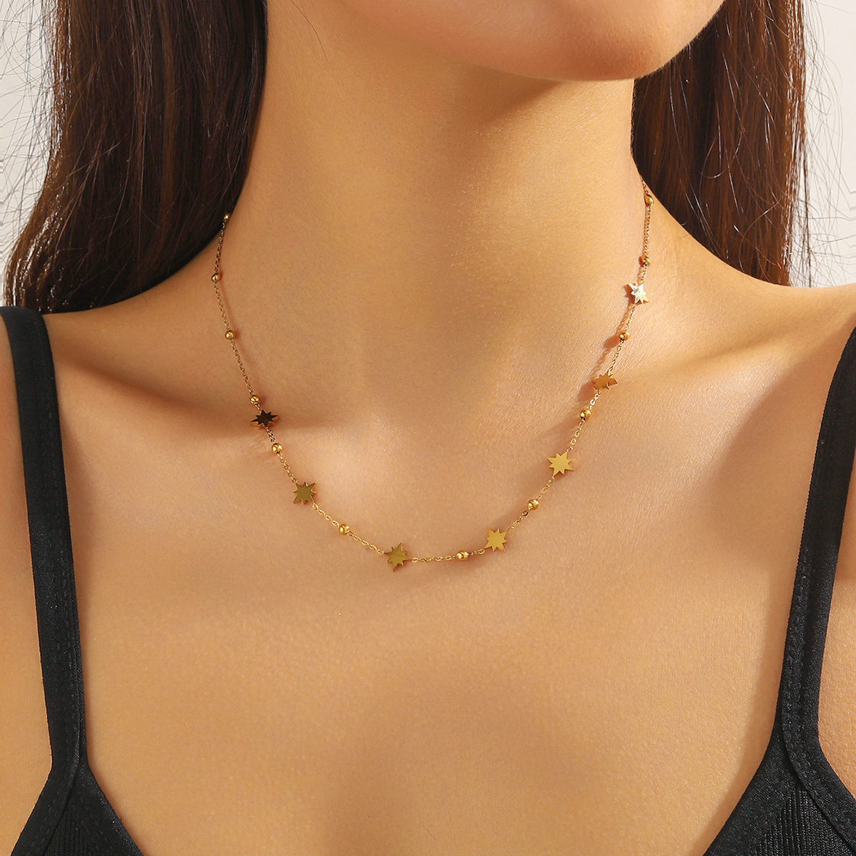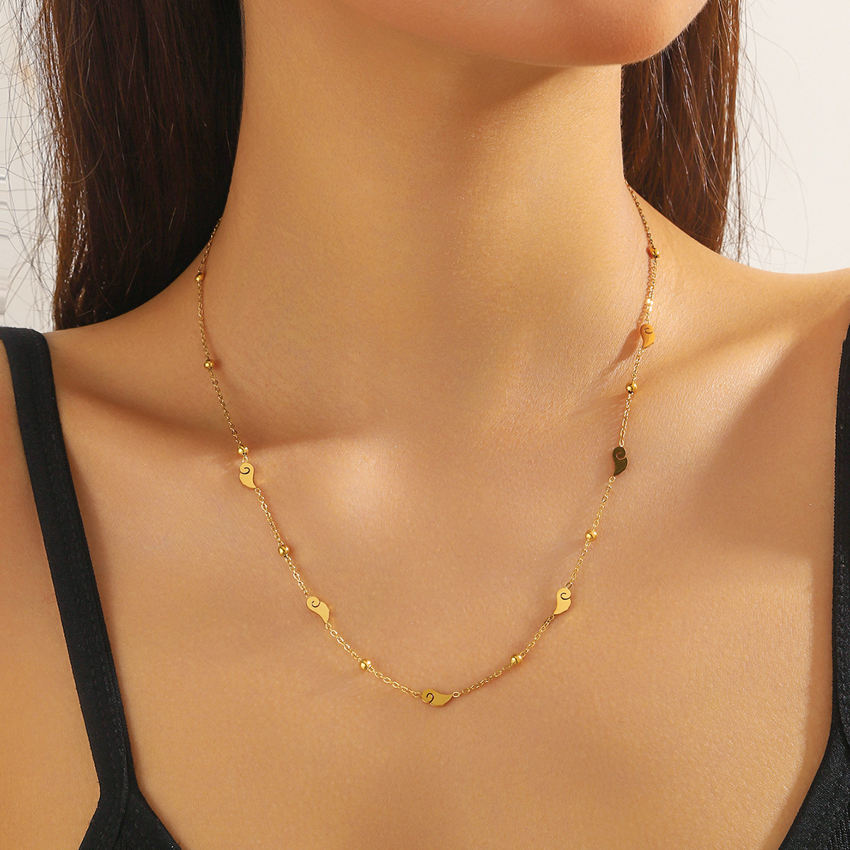 Home > New Arrival > Fashion, simple and versatile, thin chain, smooth accessories, auspicious cloud, teardrop, heart, eight-pointed star stainless steel necklace