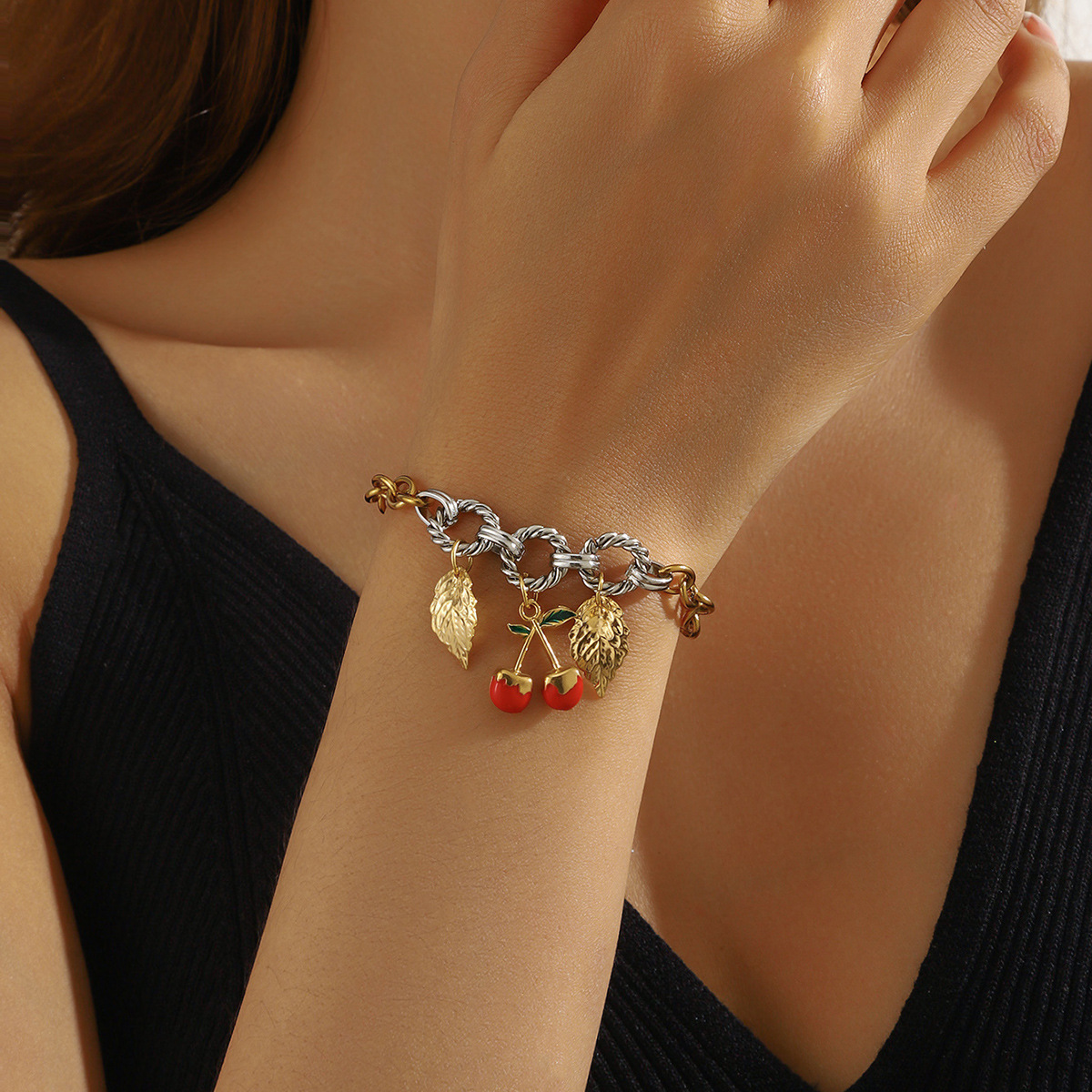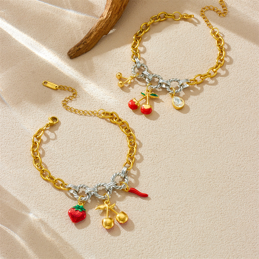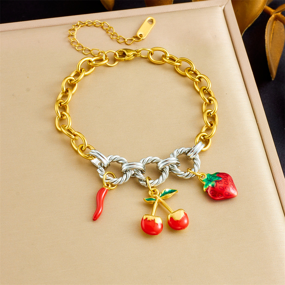 Home > New Arrival > Fashion cherry blossom oil drop pendant marine life accessory light luxury high-end stainless steel bracelet