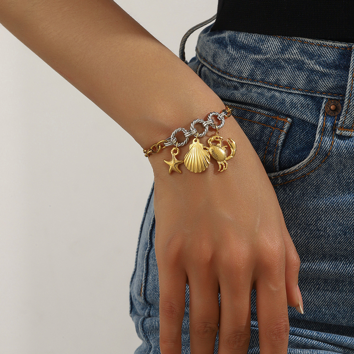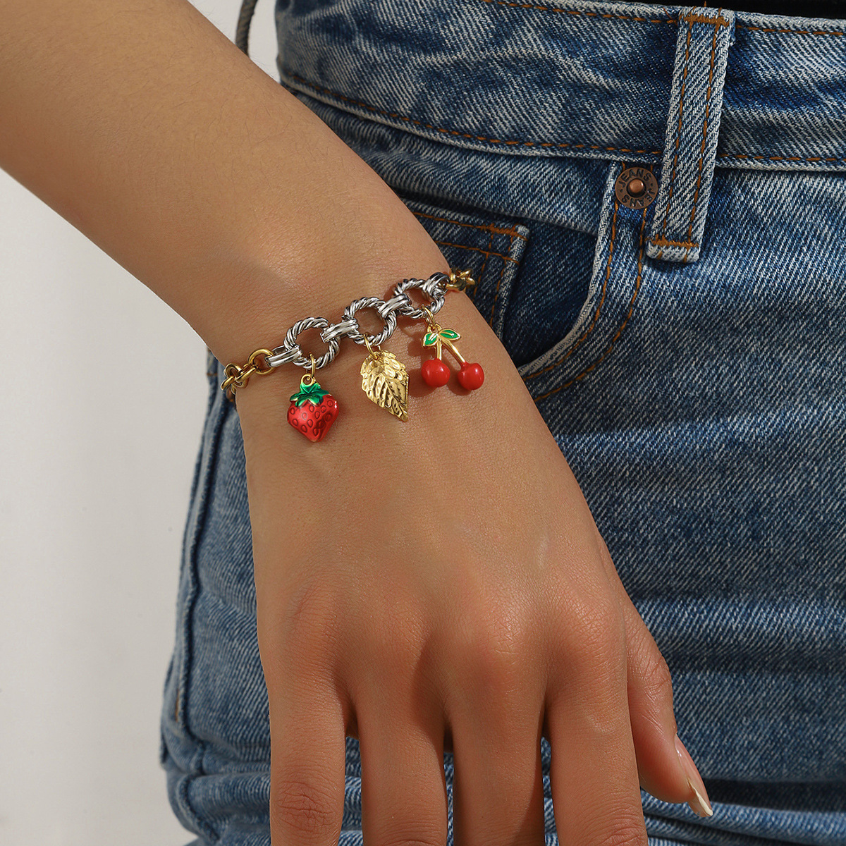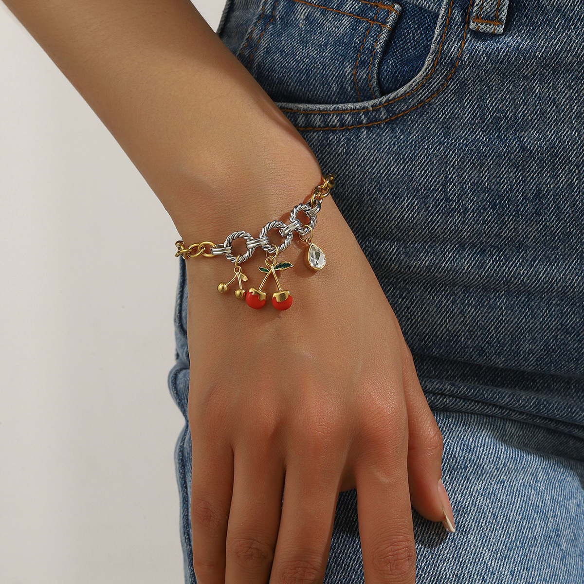 Home > New Arrival > Fashion cherry blossom oil drop pendant marine life accessory light luxury high-end stainless steel bracelet