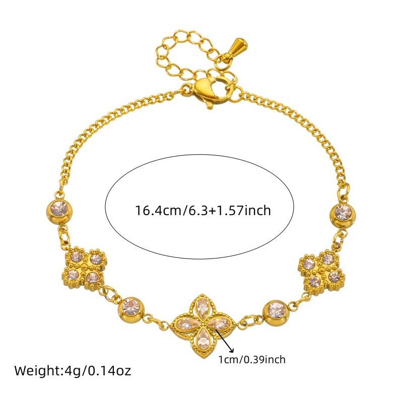 Fashion high-end diamond-encrusted four-petal flower tassel chain pendant stainless steel bracelet earring necklace set