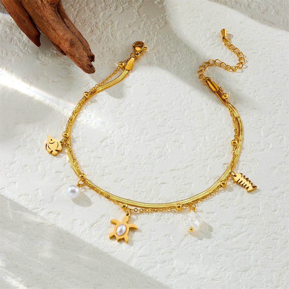 Fashion minimalist gold-plated beach style multi-layered marine life pendant seashell starfish stainless steel anklet