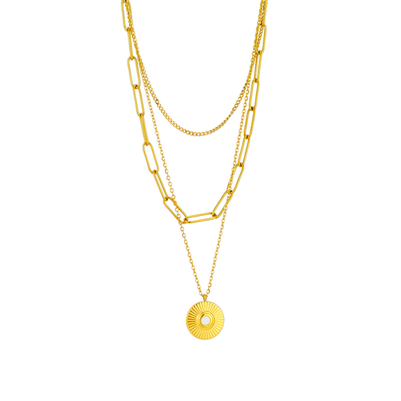 Home > New Arrival > Fashion niche design, elegant, retro, minimalist style, multi-layered irregular round pendant necklace