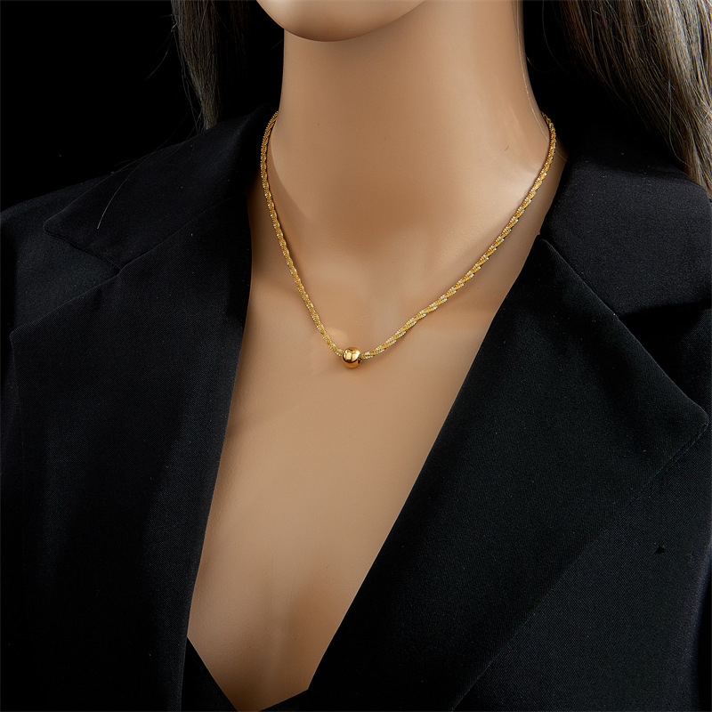 Fashion niche design metal titanium steel round bead spiral wave clavicle chain necklace, versatile and simple