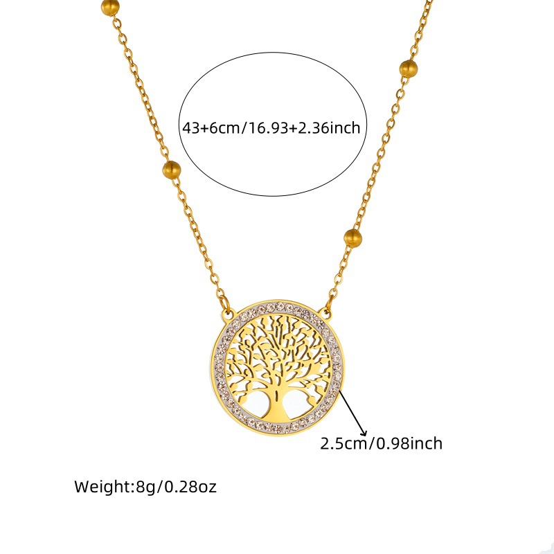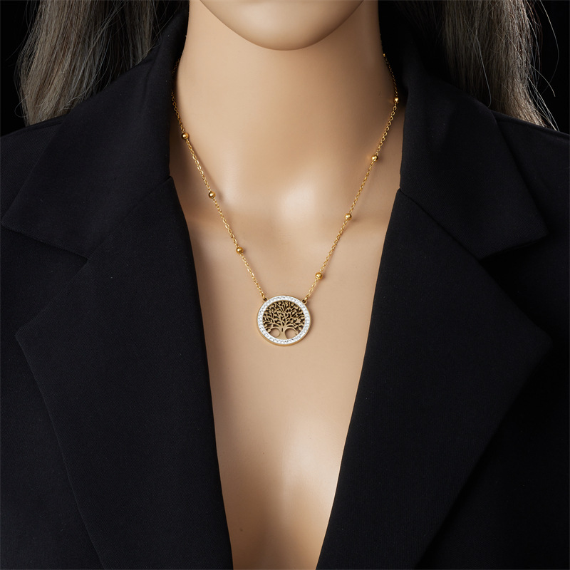 Home > New Arrival > Fashion niche design round hollow tree of life pendant accessories stainless steel stud earrings and necklace set