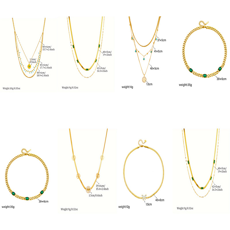 Home > New Arrival > Fashion niche retro minimalist design multi-layered chain necklace with green diamond accessories