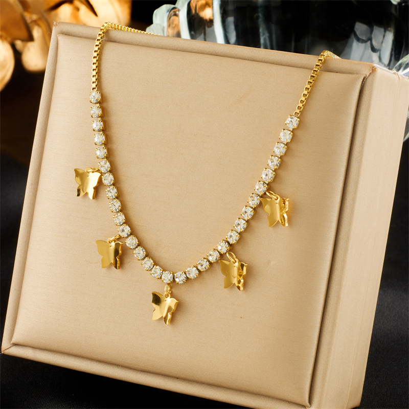 Fashion niche retro minimalist design multi-layered chain necklace with green diamond accessories