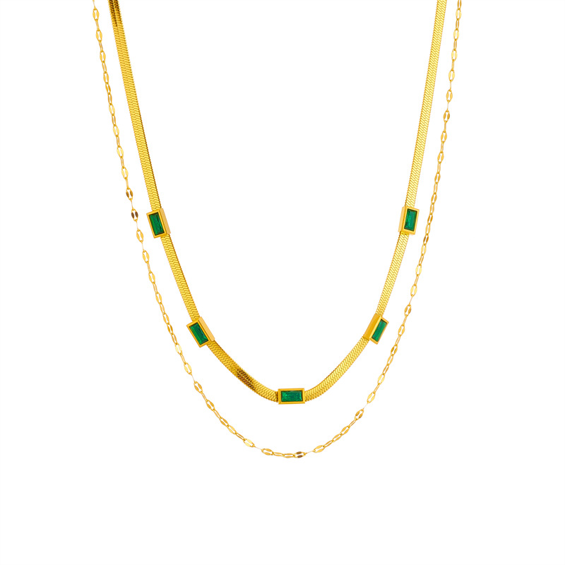 Home > New Arrival > Fashion retro high-end double-layered blade clavicle chain square diamond-encrusted accessory necklace
