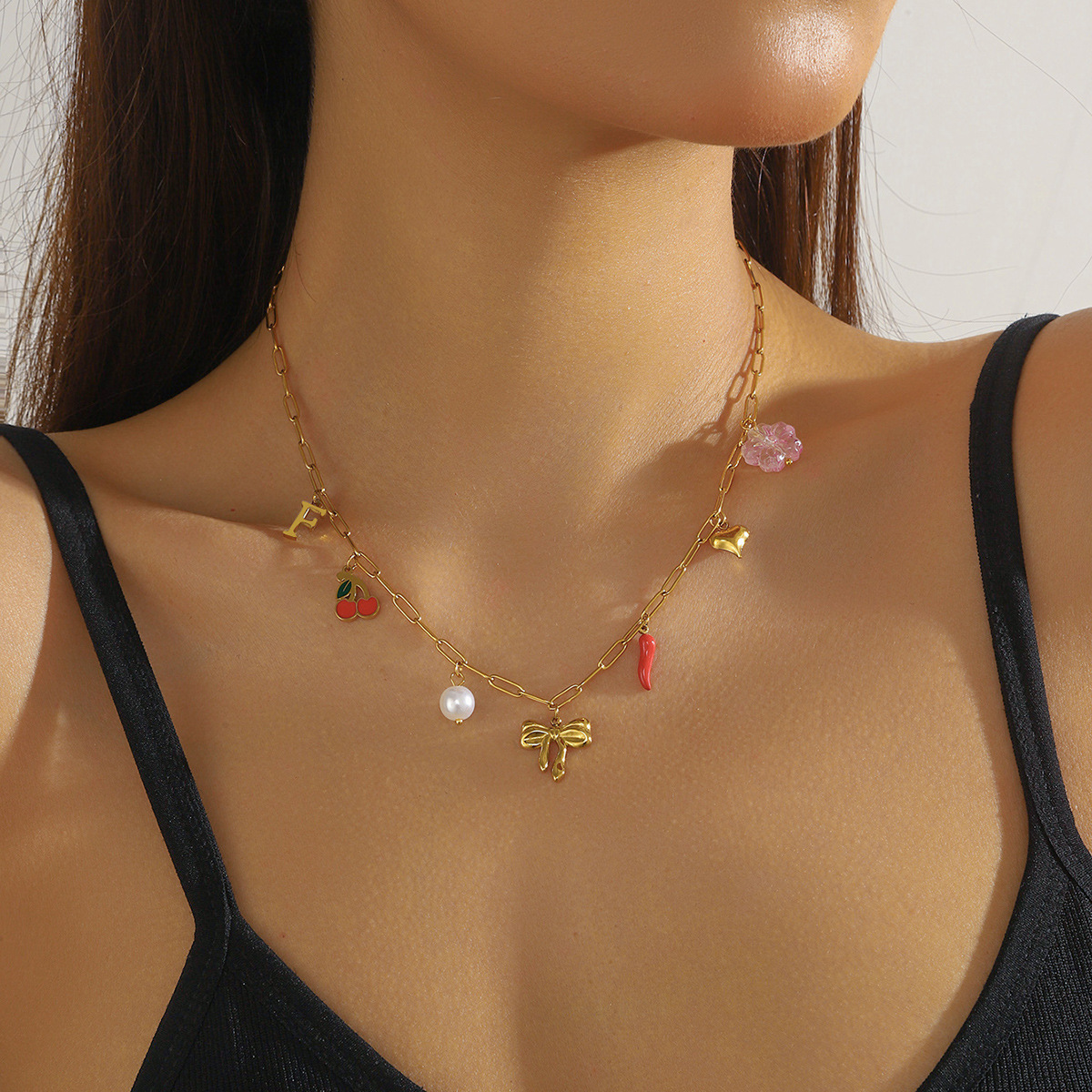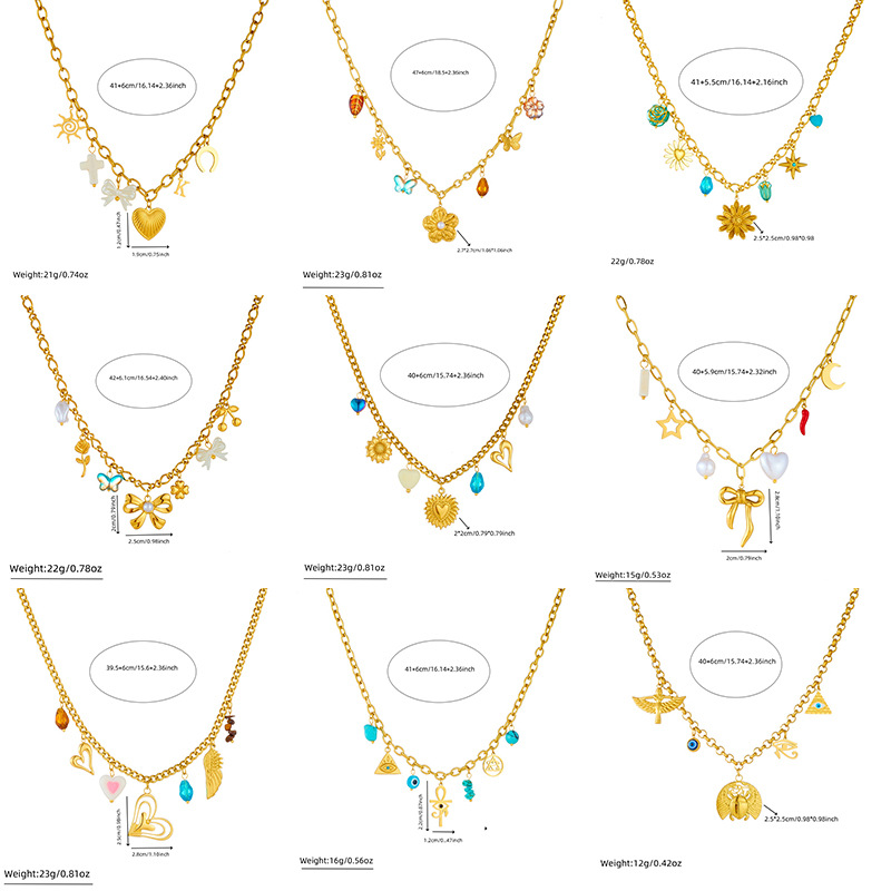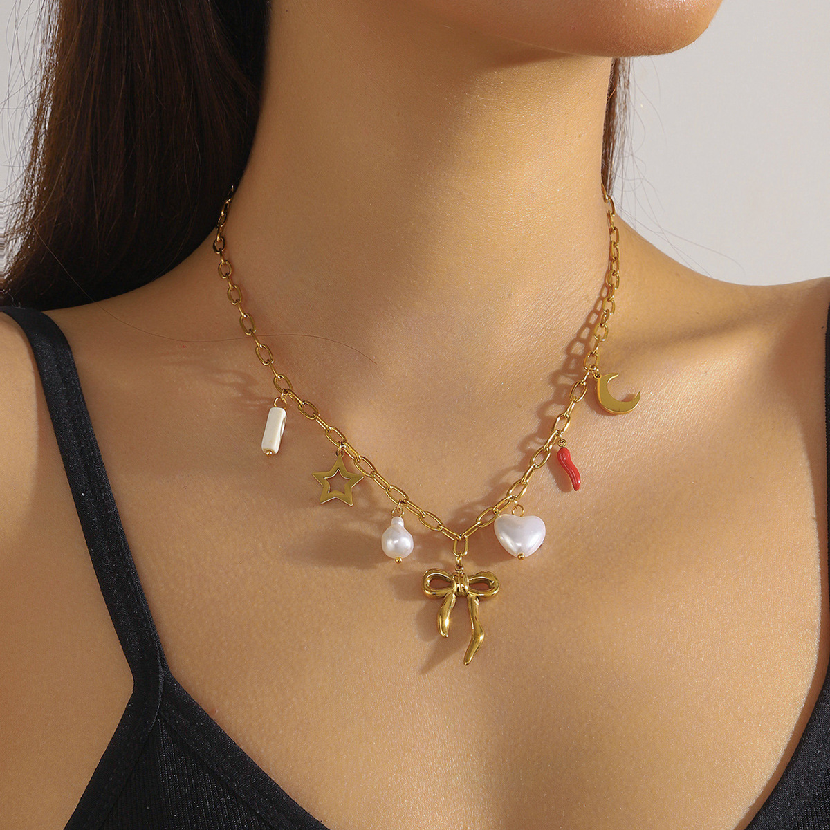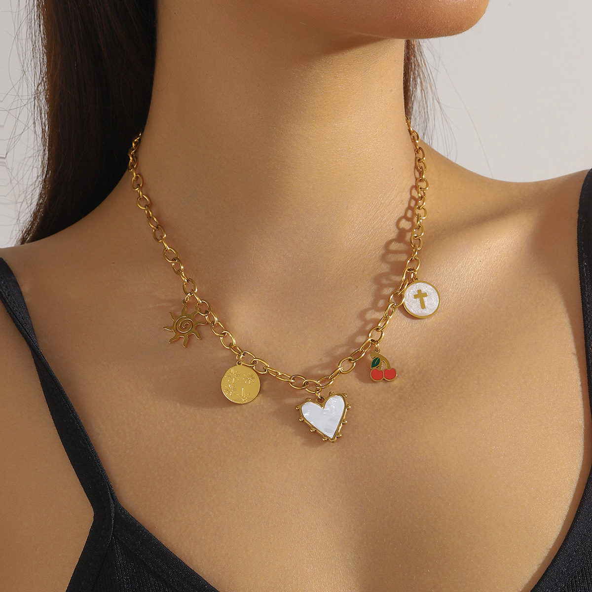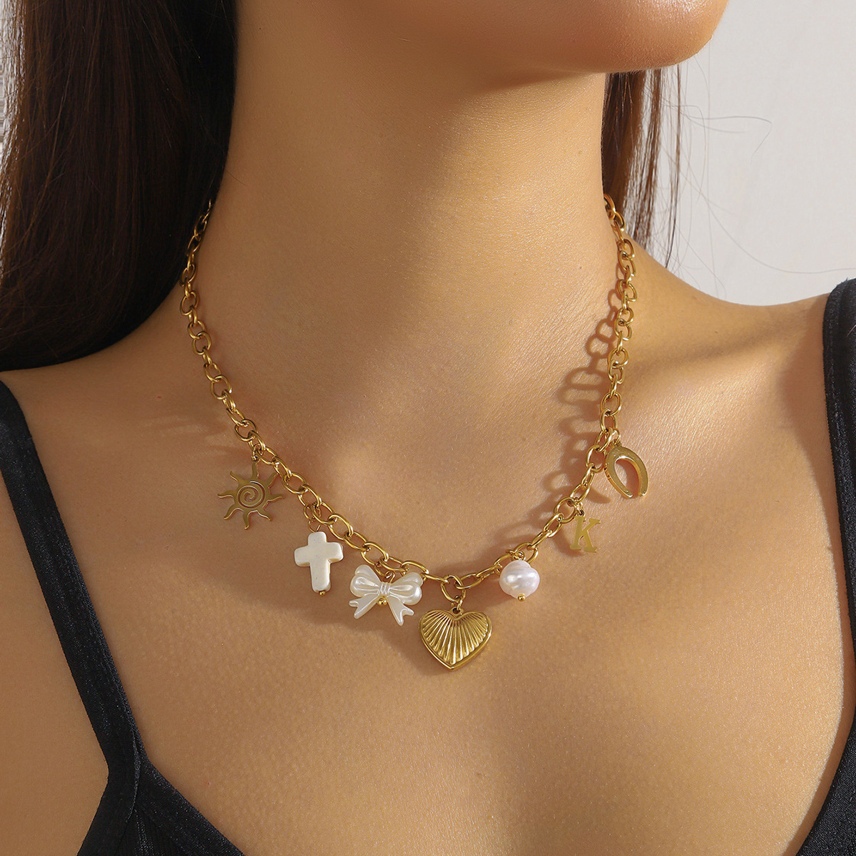 Fashion retro multi-element heart bow seashell cherry cross eye chain necklace