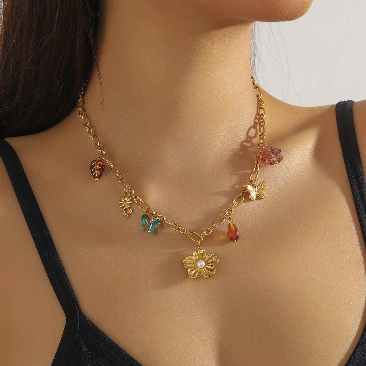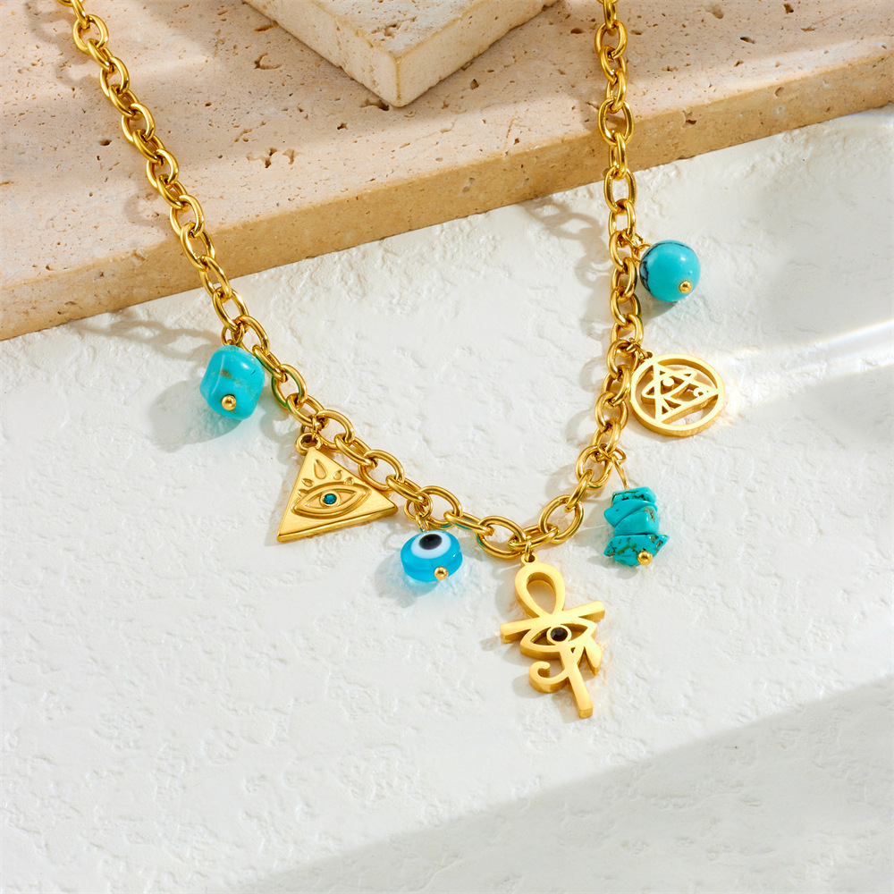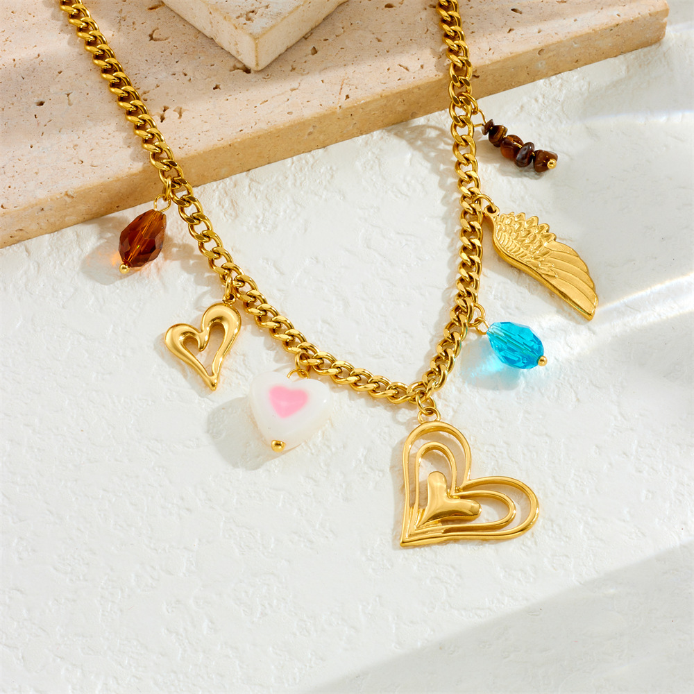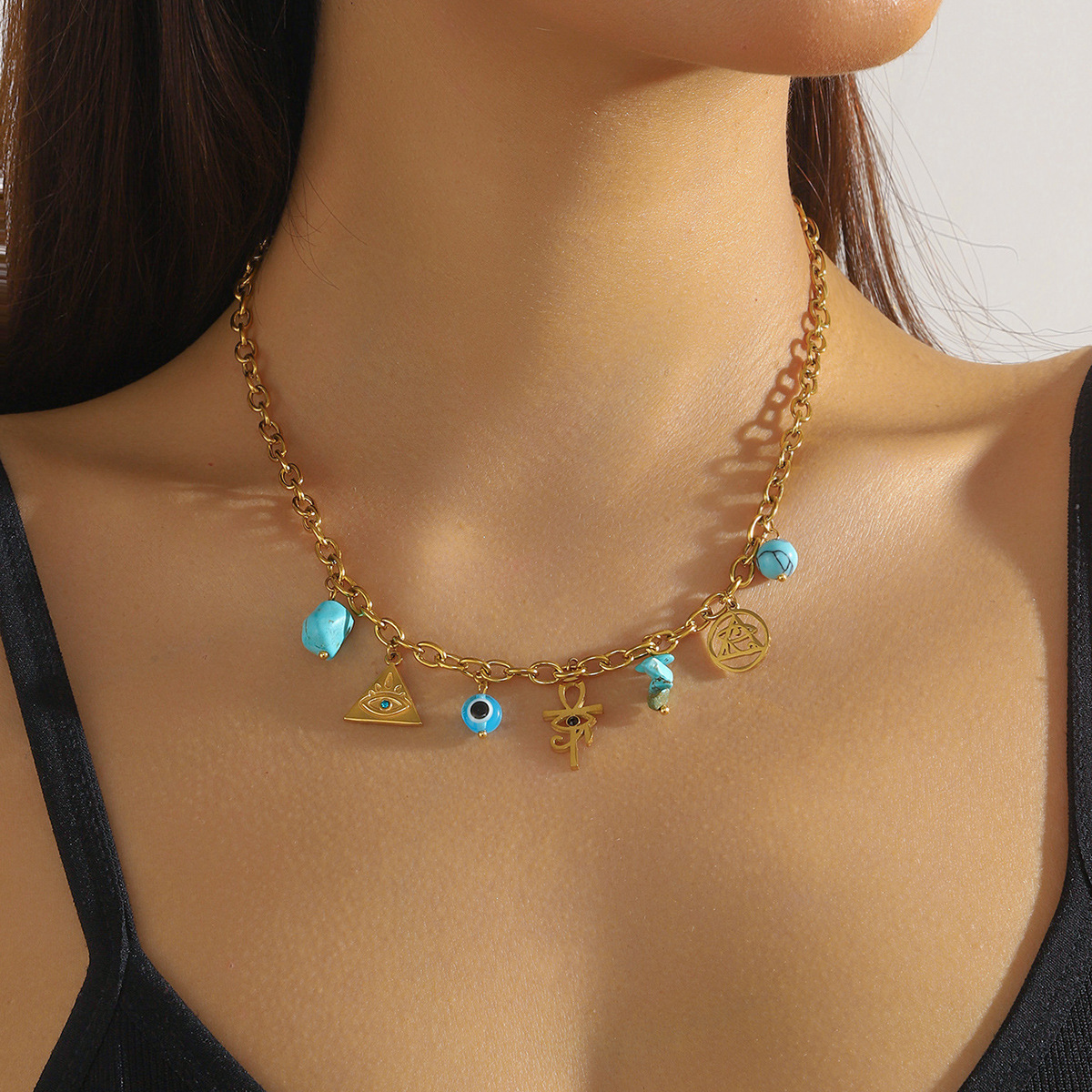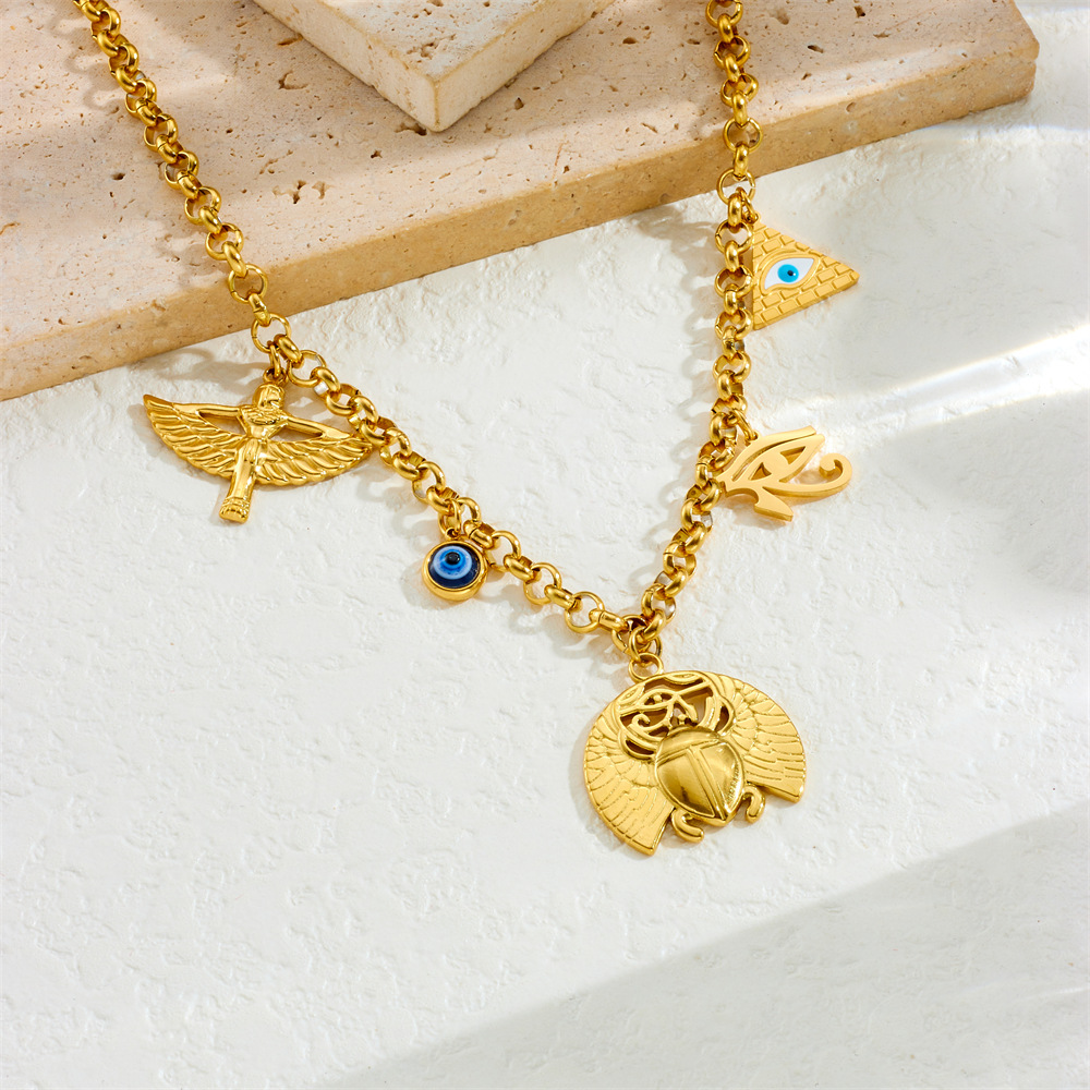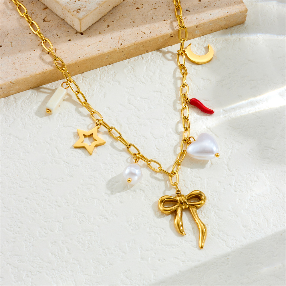 Fashion retro multi-element heart bow seashell cherry cross eye chain necklace