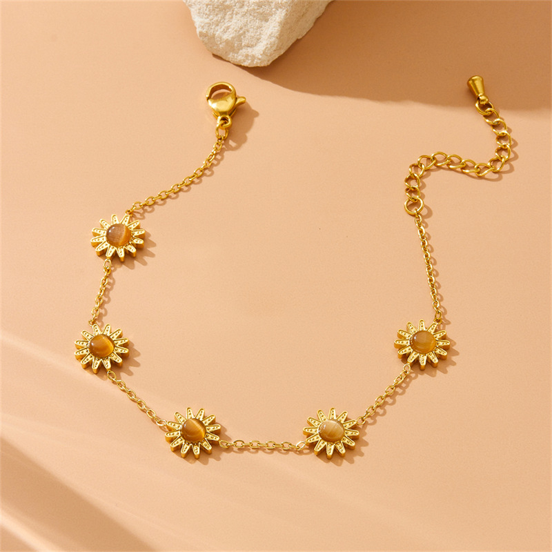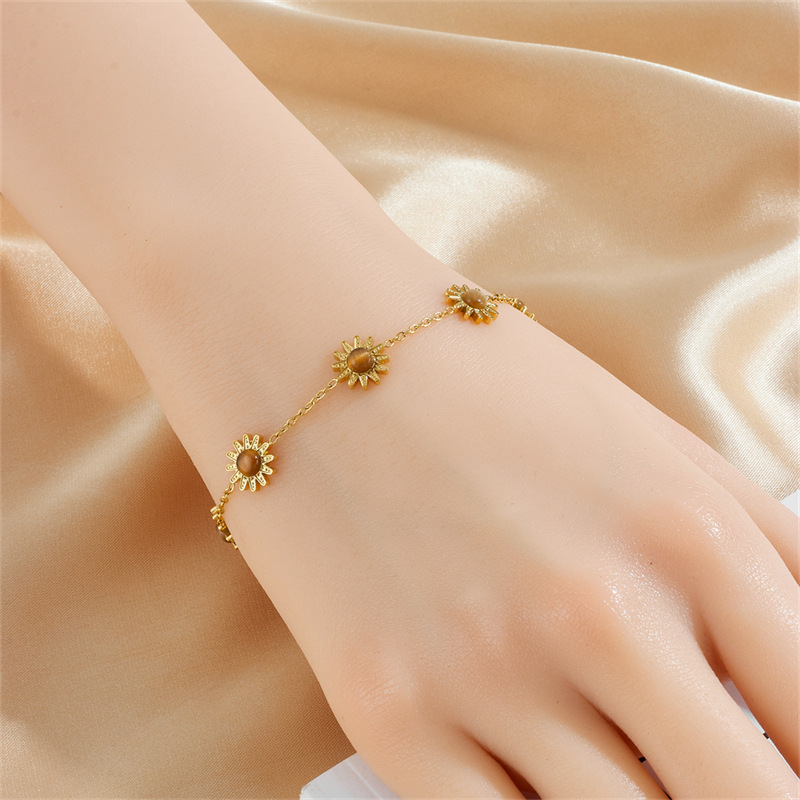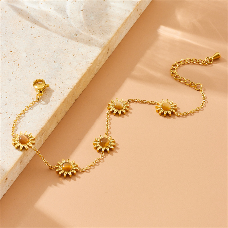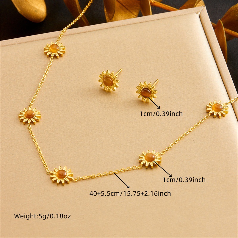 Home > New Arrival > Fashion versatile tiger's eye sunflower accessories stainless steel chain necklace earring bracelet set