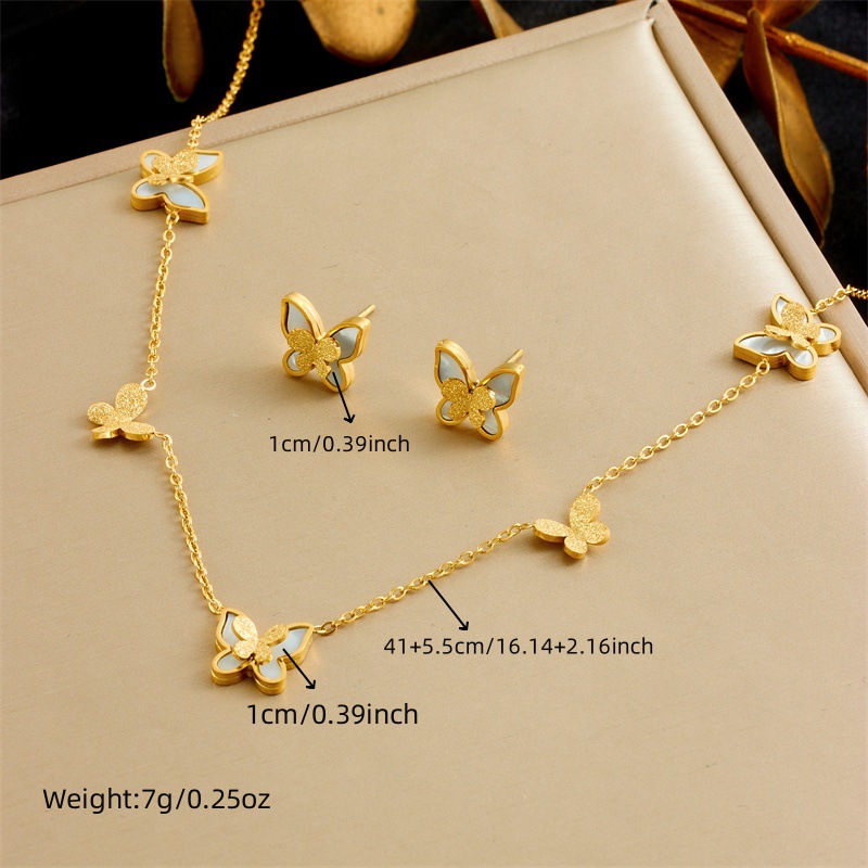 Home > New Arrival > Fashionable sweet and cute oil-pink bow flower cherry butterfly accessory stainless steel jewelry set