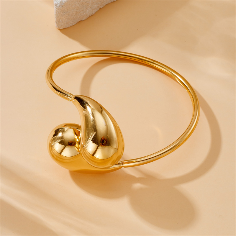 Home > New Arrival > High-end, gold-plated hollow teardrop pendant stainless steel earrings, bracelets, and necklace set