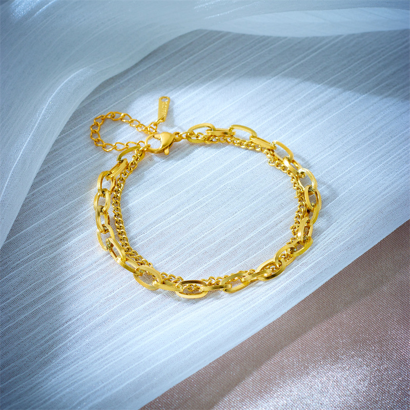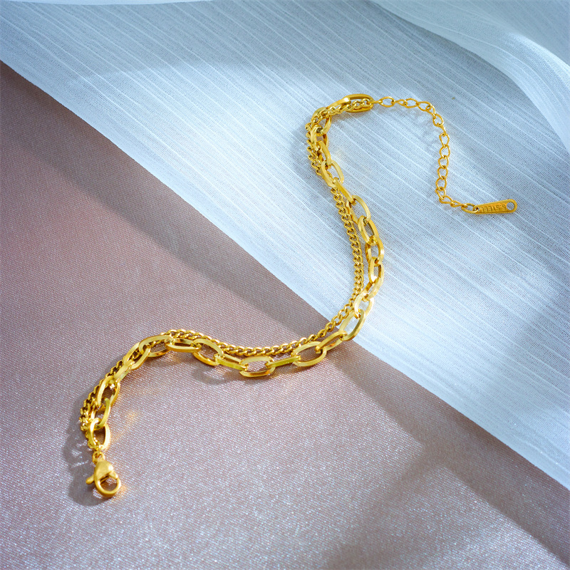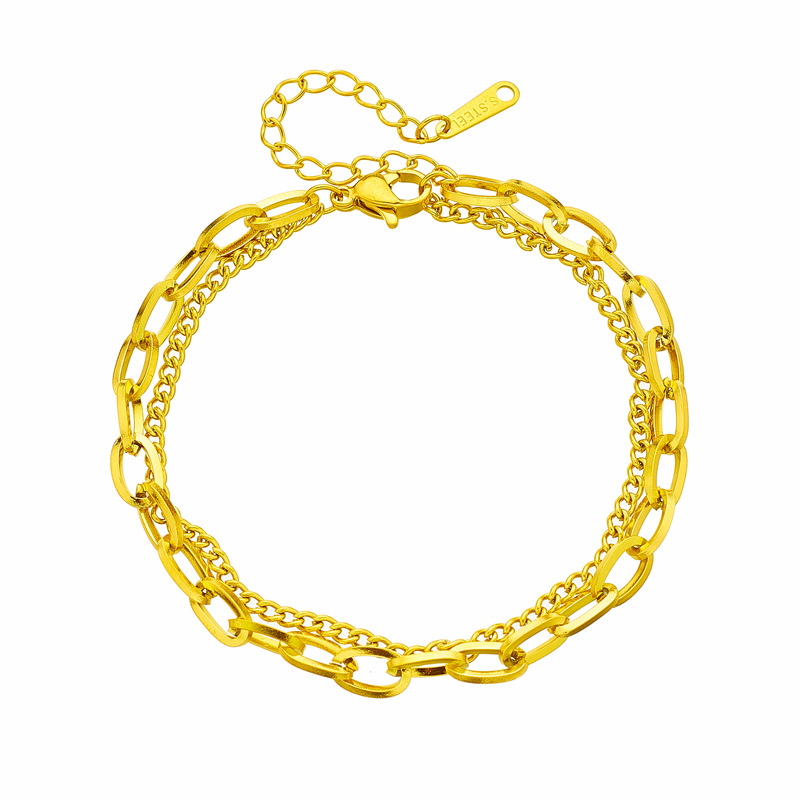 Minimalist fashion niche retro titanium steel metal double-layered hip-hop chain accessory bracelet