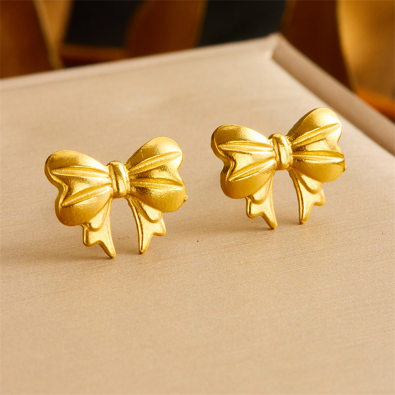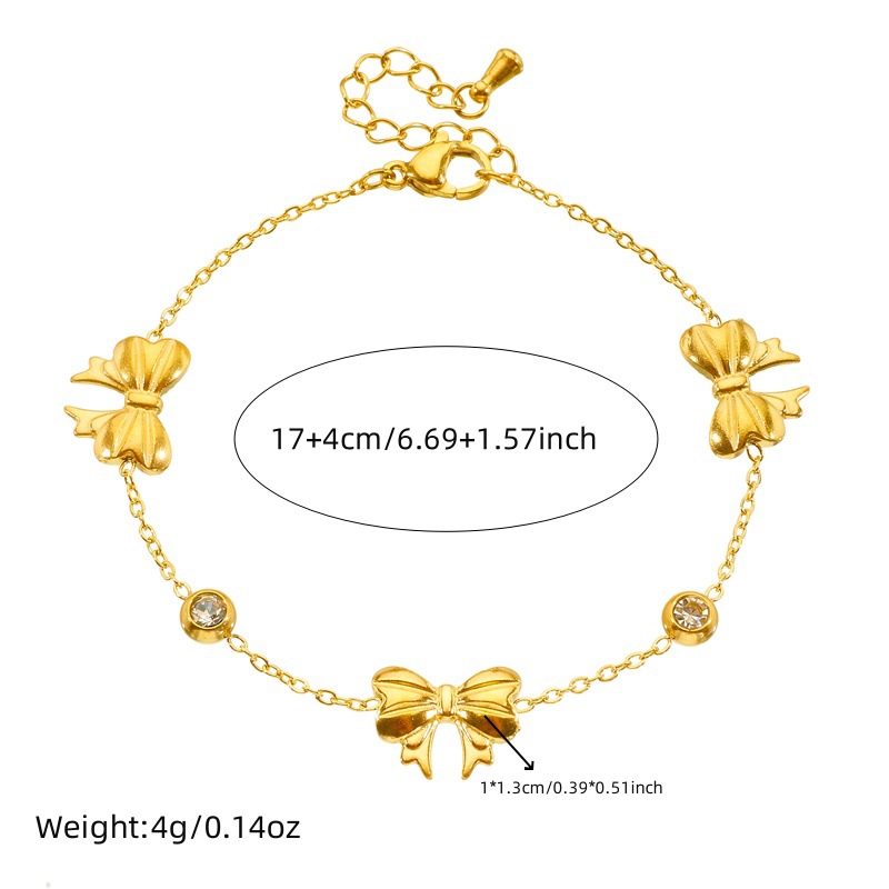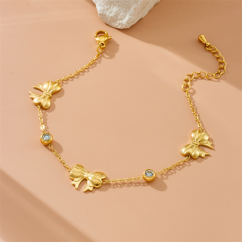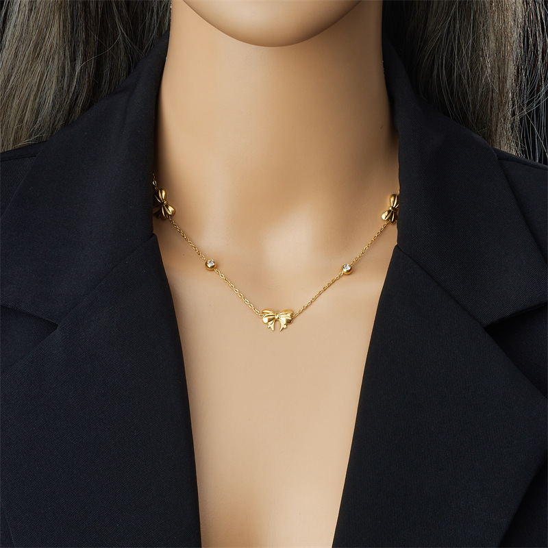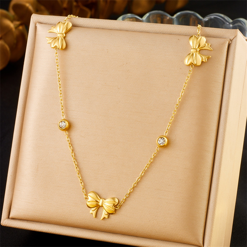 Home > New Arrival > Minimalist gold-plated retro round diamond bow accessory chain stainless steel bracelet earring necklace jewelry set