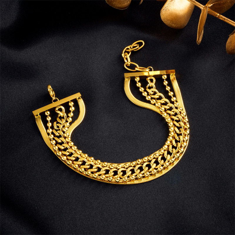Multi-layer titanium steel personalized retro trendy punk hip-hop irregular chain wide bracelet