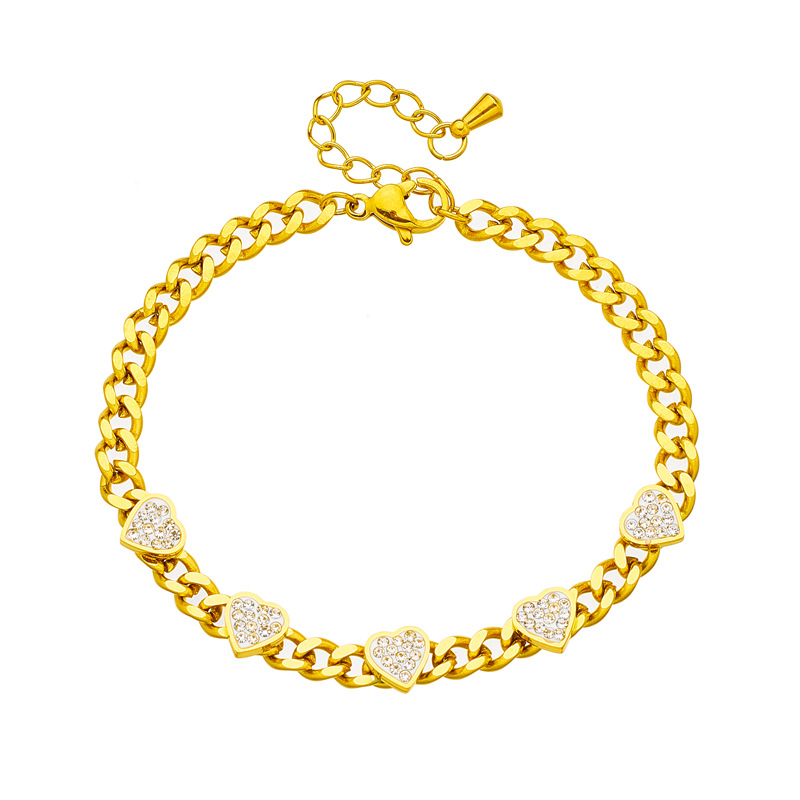 New white 3D heart chain titanium steel jewelry versatile and elegant high-end bracelet