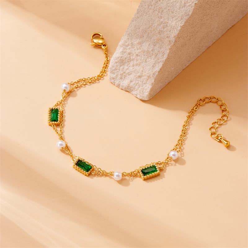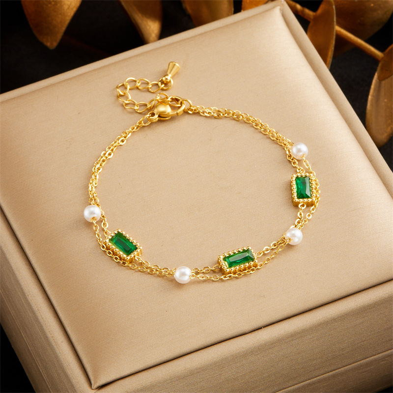 Niche retro diamond-encrusted multi-layered gold-plated stainless steel chain square flower accessory bracelet