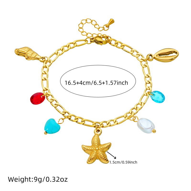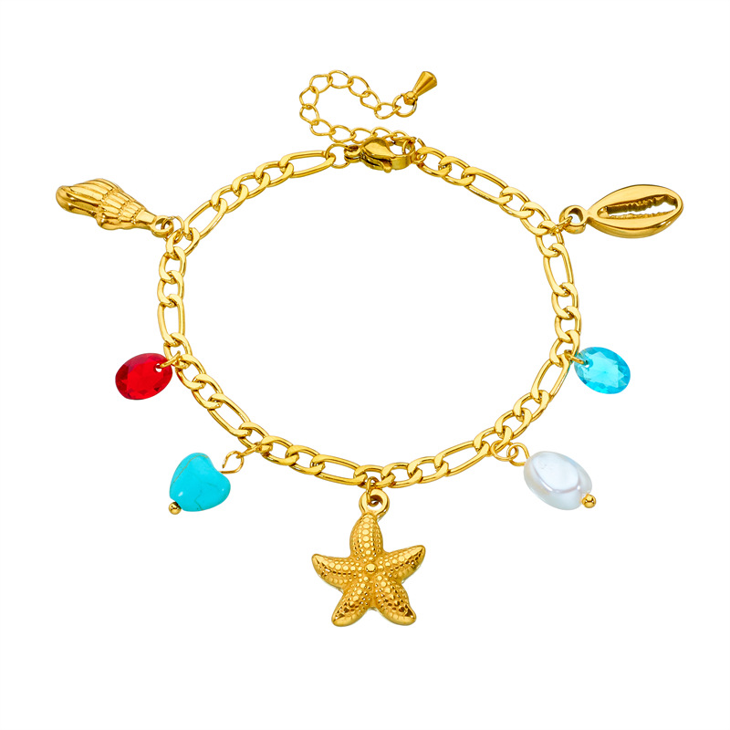 Personalized creative gold-plated turtle, dolphin, and starfish pendant stainless steel chain jewelry bracelet