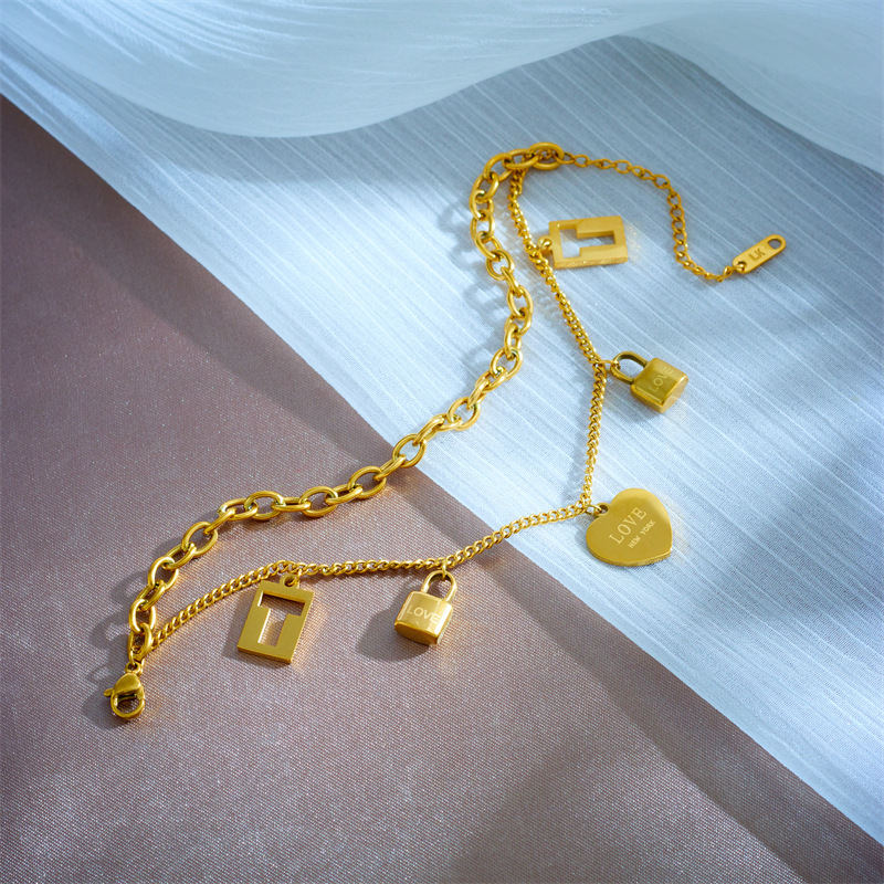 Home > New Arrival > Titanium steel double-layer chain heart-shaped engraved hollow lock pendant, jewelry bracelet, European and American style