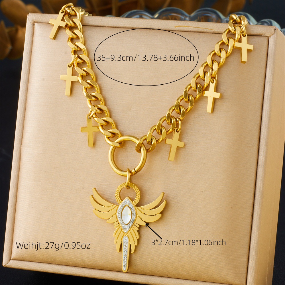 Home > New Arrival > Unisex stainless steel chunky chain necklace with star, diamond-encrusted wings, sun pendant, sweater chain, jewelry wholesale.