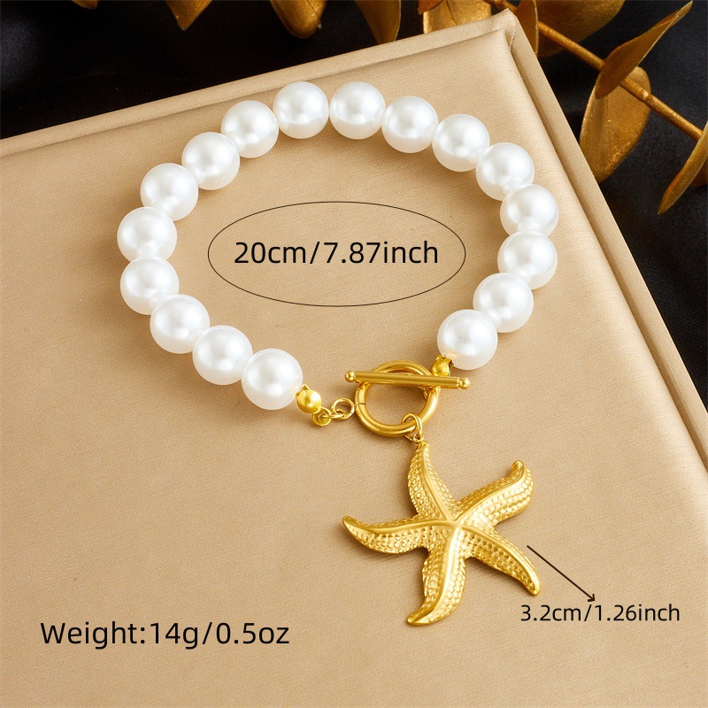 Vintage design pearl chain gold-plated OT clasp stainless steel scallop starfish pendant bracelet and necklace set