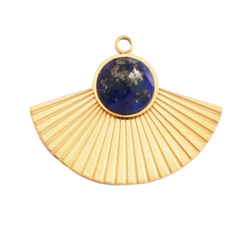 Home > New Arrival > 316 Stainless Steel Vaccum Plating Sun Fan Triangle Gem Stone Geometry Charm Pendant,DIY Bracelet Necklace Components Supply L72