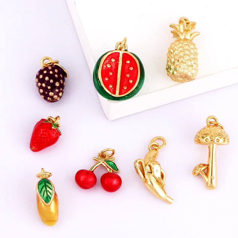 3D Fruit Strawberry Grape Mango Pineapple Water Melon Cherry Banana Charm Pandent , Jewelry Necklace Bracelet Making Supply M15