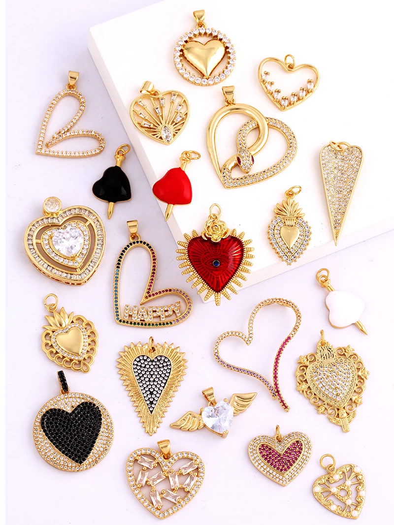 Home > Pendants and charms > Acred Sacred Red Heart Charm Mexico Victorian Love Zircon Pendant,Christian 18K Real Gold Plated for Jewelry Making Supplies L26
