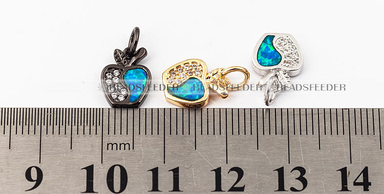 Home > Pendants and charms > Brass Charms and Pendants > Apple charm/pendant,blue opal, clear CZ micro paved,findingings,Cubic Zirconia CZ pendant,jewelry supplies,craft supplies,14x8.5x2mm,1pc
