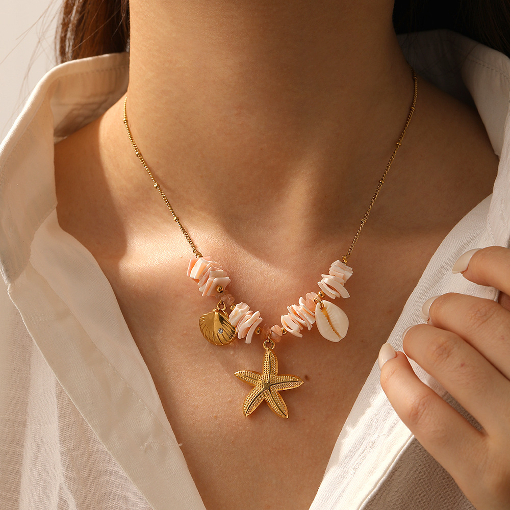 Home > New Arrival > Beach vacation jewelry, stainless steel pendant, fashionable and versatile clavicle chain for women.