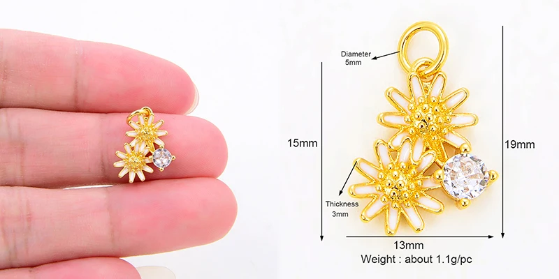 Beadsfeeder mini Daisy flower korean style charm pendant, gold/silver/rosegold colour plated , craft jewelry supplies