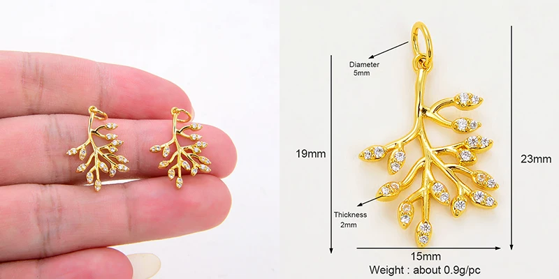 Beadsfeeder mini leaf leaves garland flower charm pendant, real gold colour plated , craft jewelry supplies L75