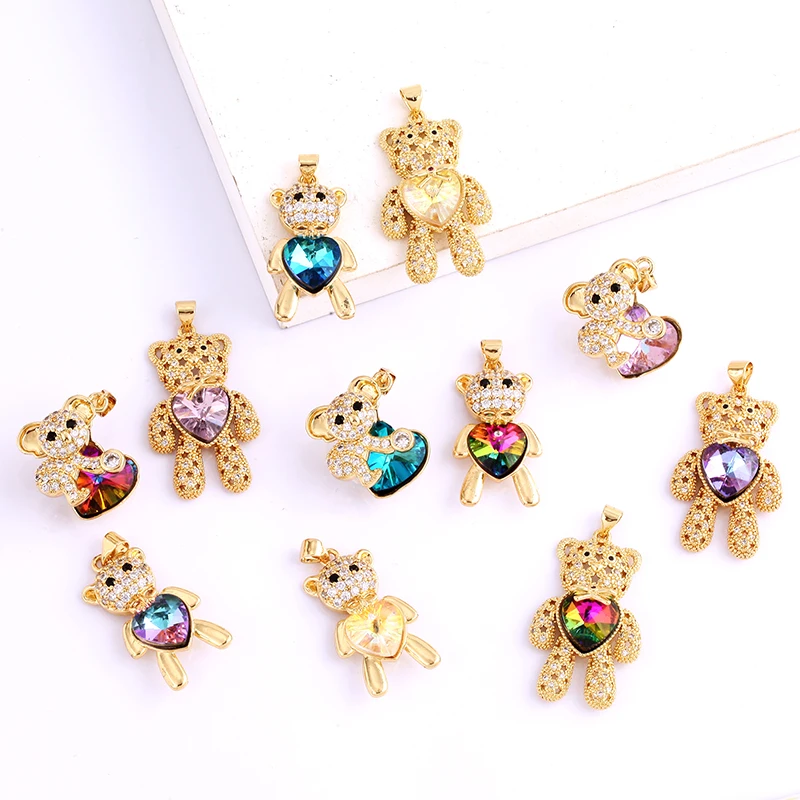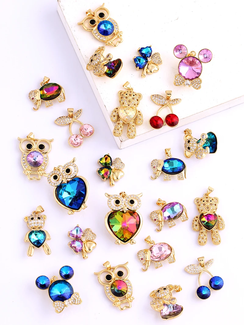 Home > Pendants and charms > Bear Mouse Elephant Owl Clover Cherry Transparent Crystal Glass Charm Pendant, Animal Jewelry Craft Necklace Making Supplies M45