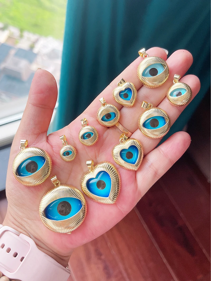 Blue Round Heart Eye Lucky Amulet Turkish Lucky Pendant,Real 18k Gold Plated Necklace Bracelet Jewelry Findings Supplies S52