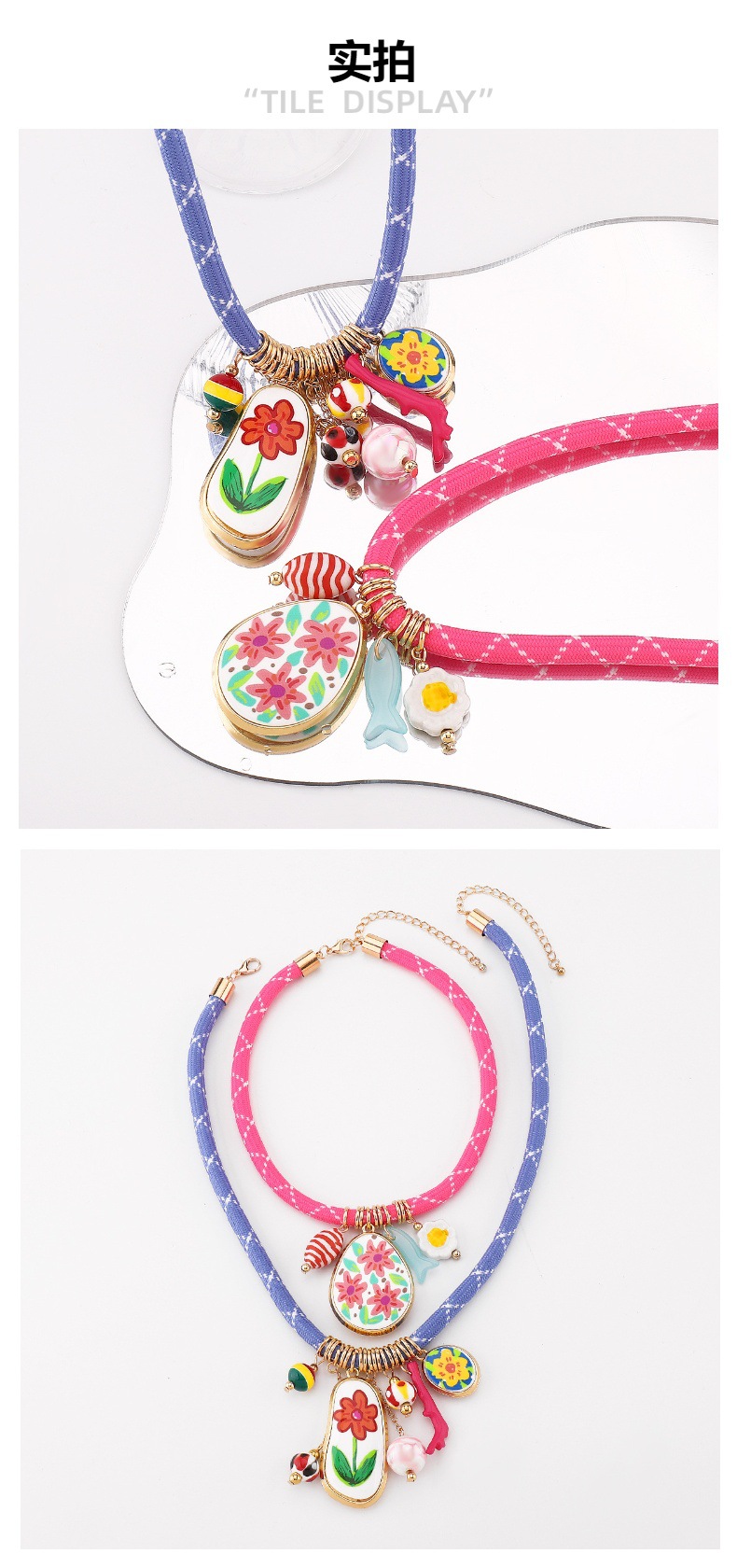 Bohemian ZA summer multi-element pendant necklace cute flower frangipani fish coral clavicle chain N12678 X1067-287