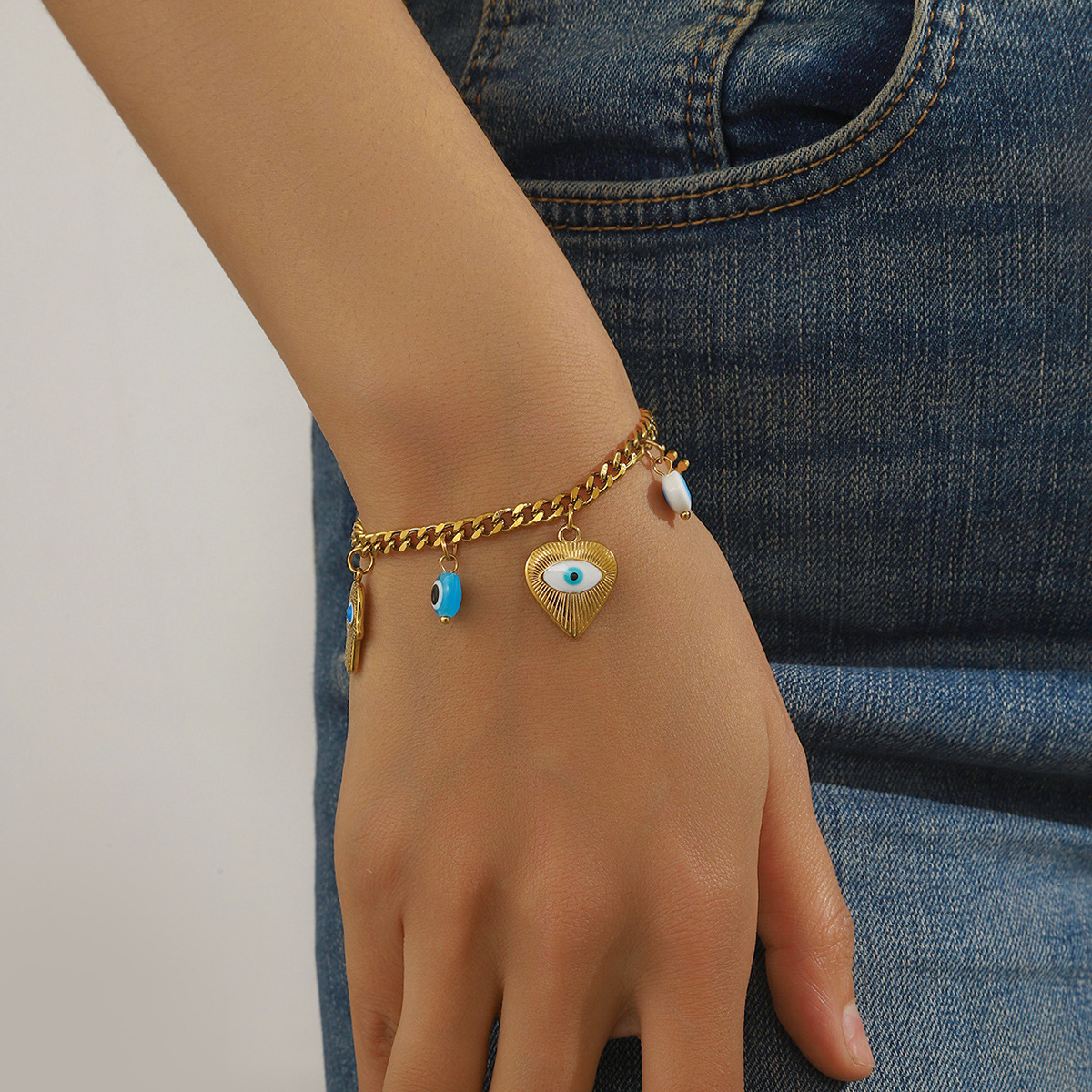 Cartoon evil eye heart pendant hand chain stainless steel jewelry bracelet