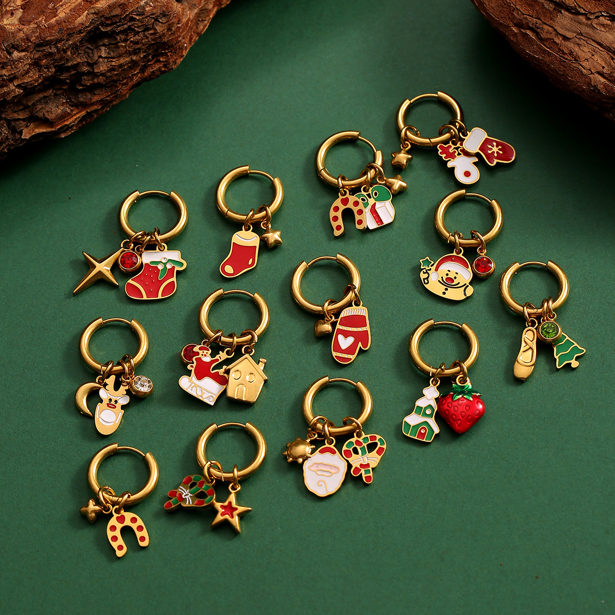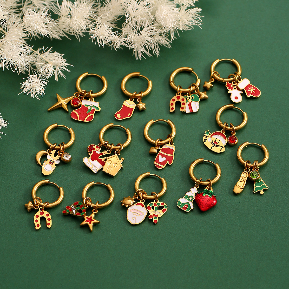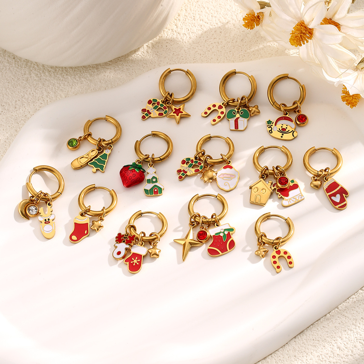 Christmas series of stylish stainless steel gold-plated hoop earrings, perfect for a festive and unique look.