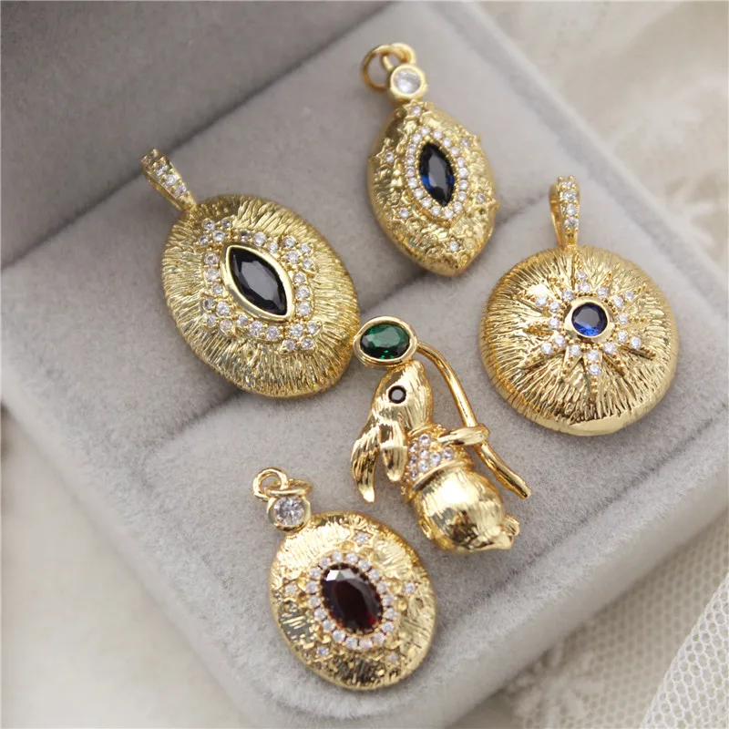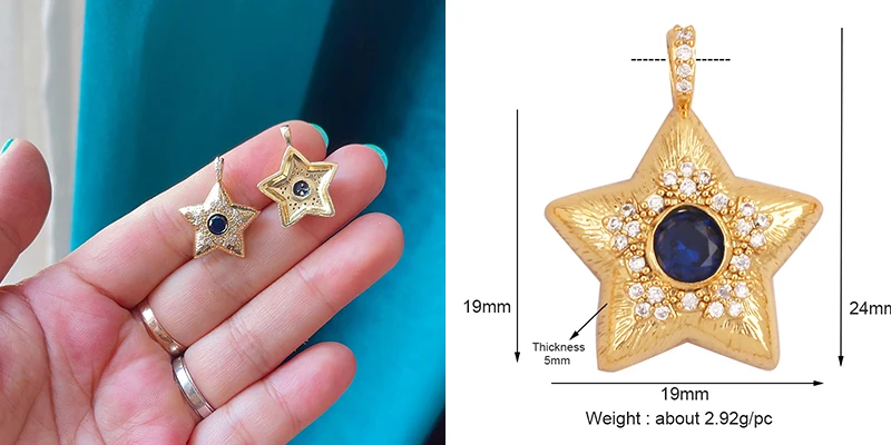 Classic Star Heart Flower Hand Geometry Shape Gemstone Jewelry Findings,Fashion 18k Gold Inlaid Zirconia Necklace Supply L44