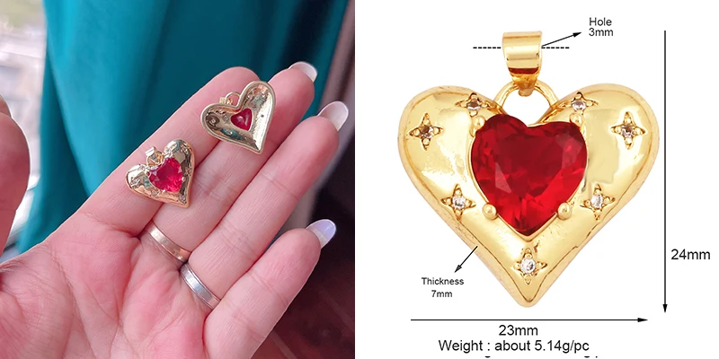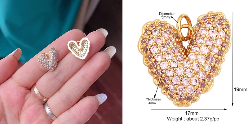 Classics Love Heart Cubic Zirconia Charm Pendant,Fashion Heart Shape Hollow 18K Gold Plated Colourful Craft Jewelry Supply L38