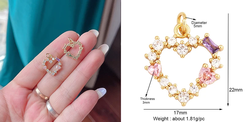 Home > Pendants and charms > Classics Love Heart Cubic Zirconia Charm Pendant,Fashion Heart Shape Hollow 18K Gold Plated Colourful Craft Jewelry Supply L38