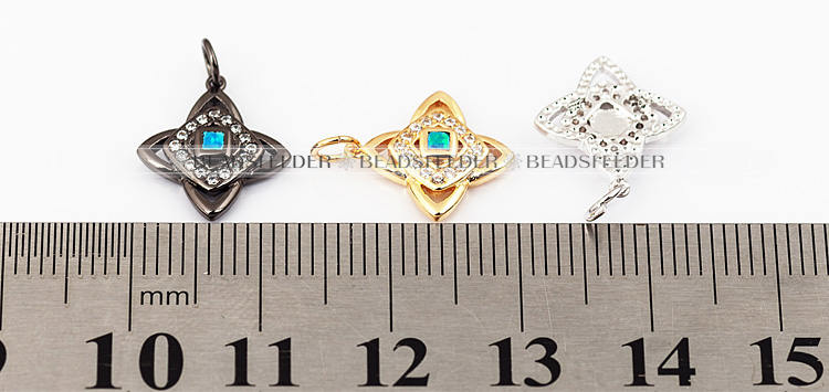 Clover flower charm/pendant,blue opal, clear CZ micro paved,findingings,Cubic Zirconia CZ pendant,jewelry supplies,craft supplies,14mm,1pc