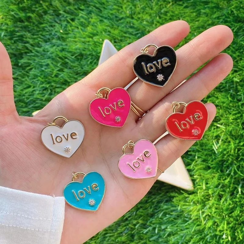 Clover Love Heart Hot Mama Enamel Charm Neon Pink Turquoise Blue Oil Dropped,18K Gold Plated Necklace Bracelet Pendant M24