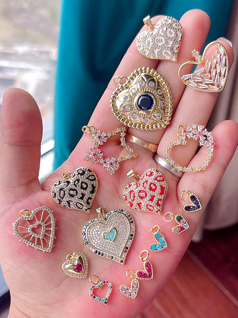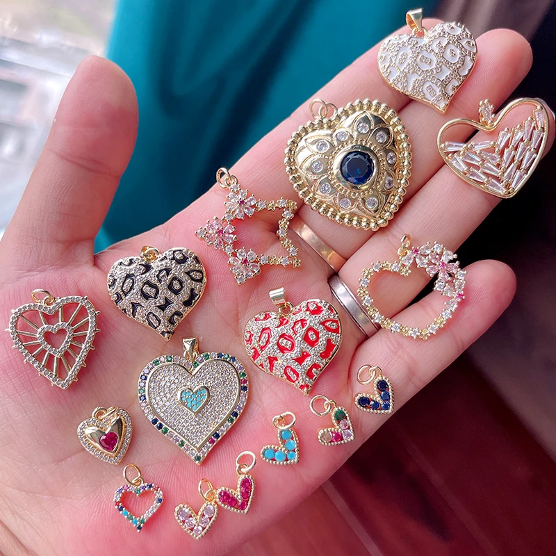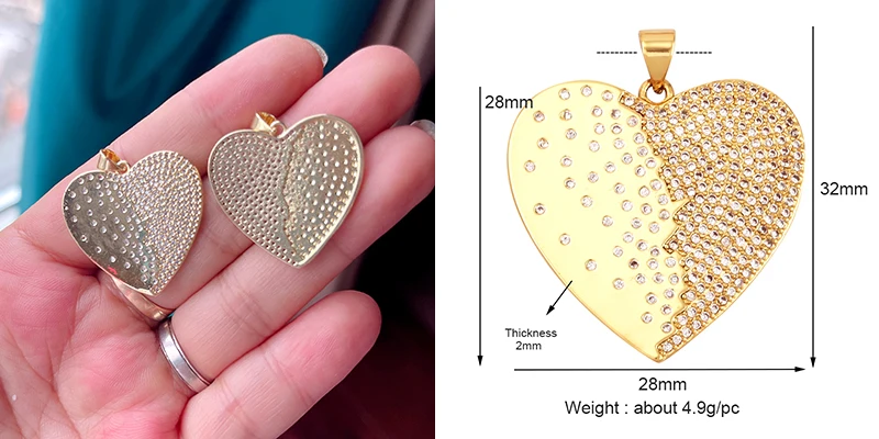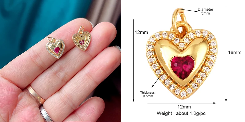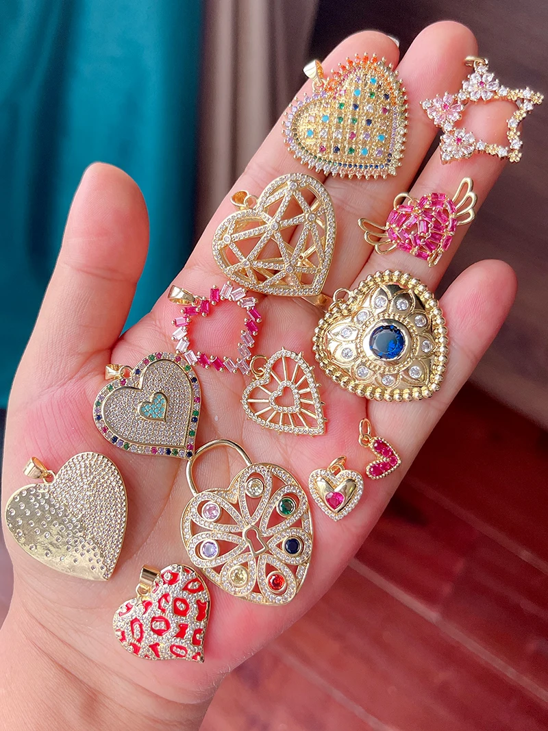 Colour Rainbow CZ Heart Wing Charm Pendant,Cubic Zirconia Paved Pink Blue,18K Real Gold Plated Colour,Craft jewelry Supplies L38