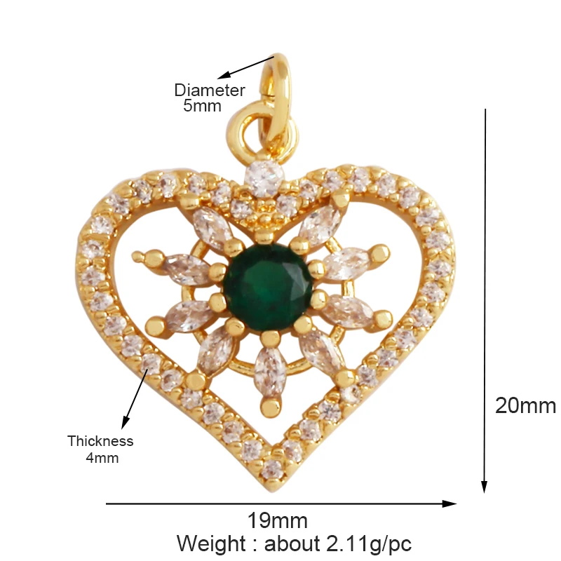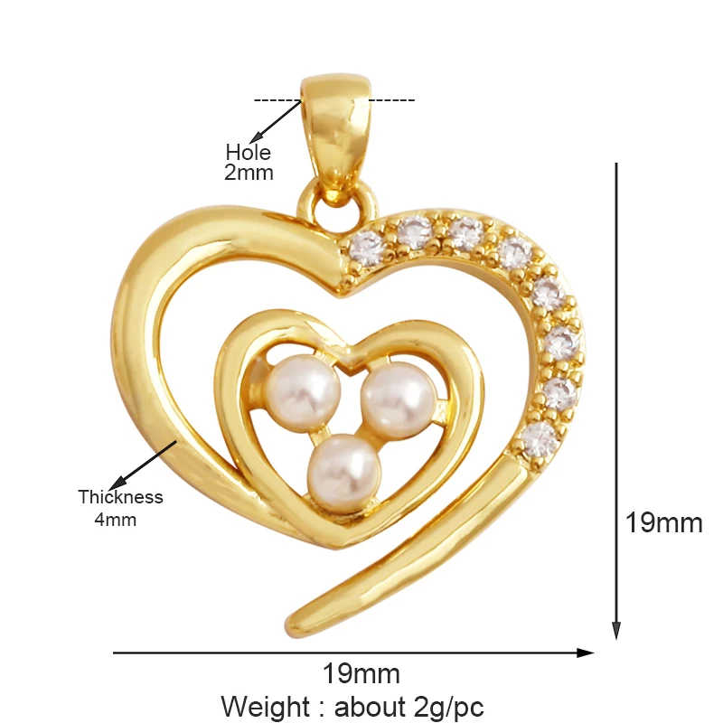 Home > New Arrival > Colour Rainbow Love Heart Wing Shell Pearl Zircon Charm Pendant,18K Gold Plated Jewelry Findings Necklace Accessories Supply L49