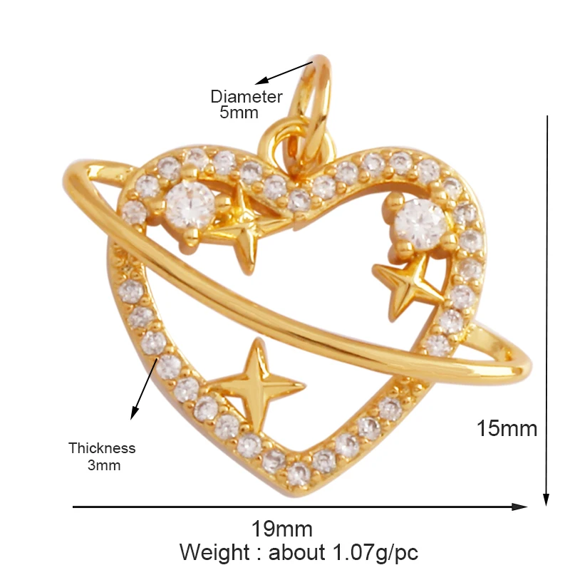 Colour Rainbow Love Heart Wing Shell Pearl Zircon Charm Pendant,18K Gold Plated Jewelry Findings Necklace Accessories Supply L49