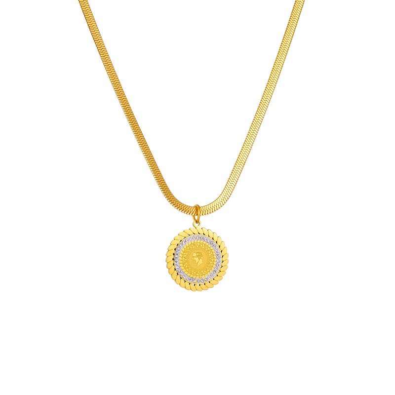 Home > New Arrival > Creative niche retro high-end portrait print diamond-encrusted round pendant snake bone chain necklace