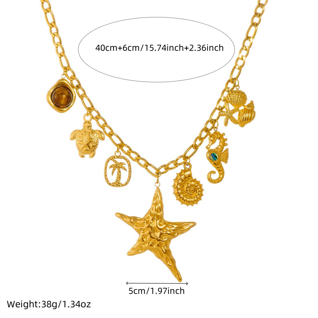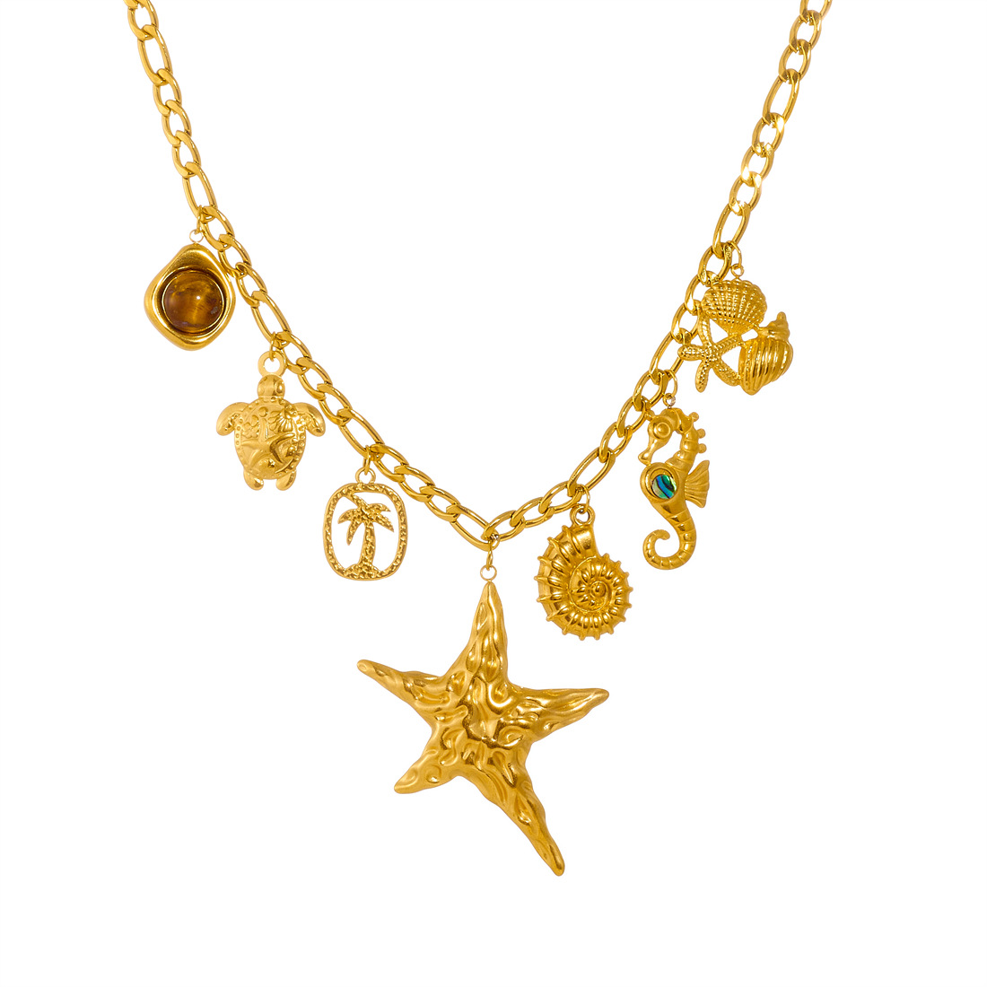 Home > New Arrival > Creative personalized heavy metal gold-plated starfish pendant stainless steel marine life accessory necklace