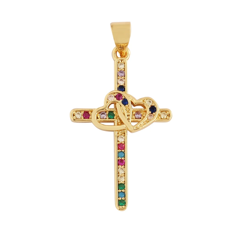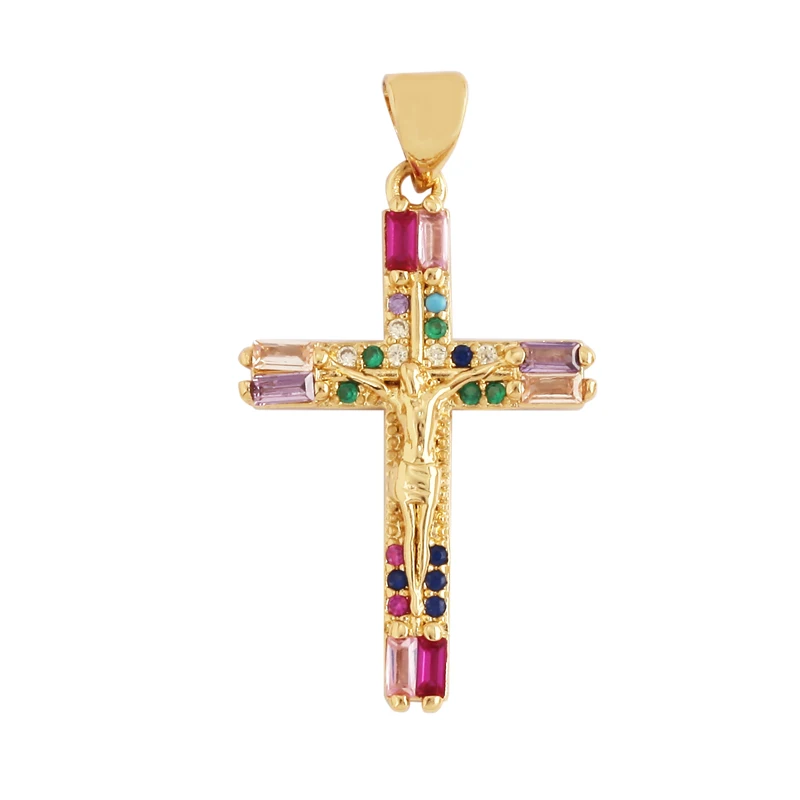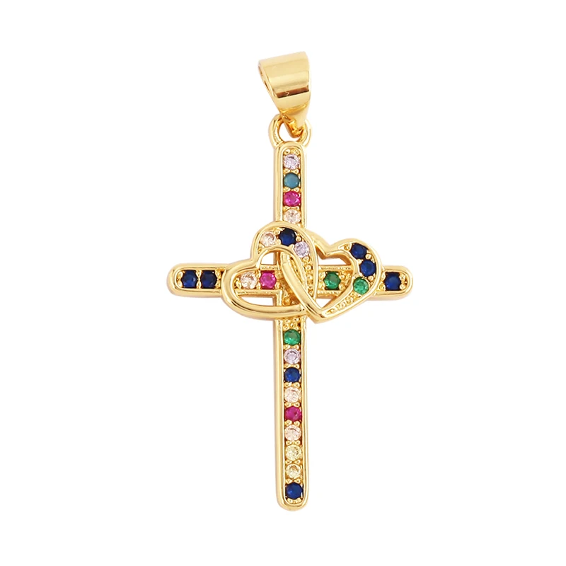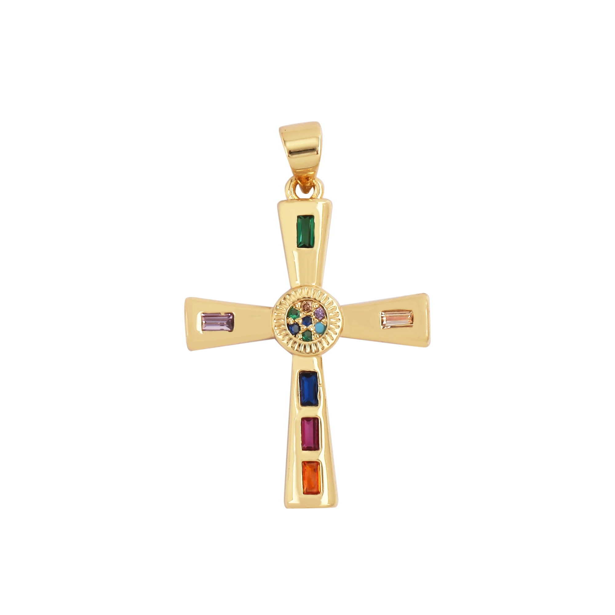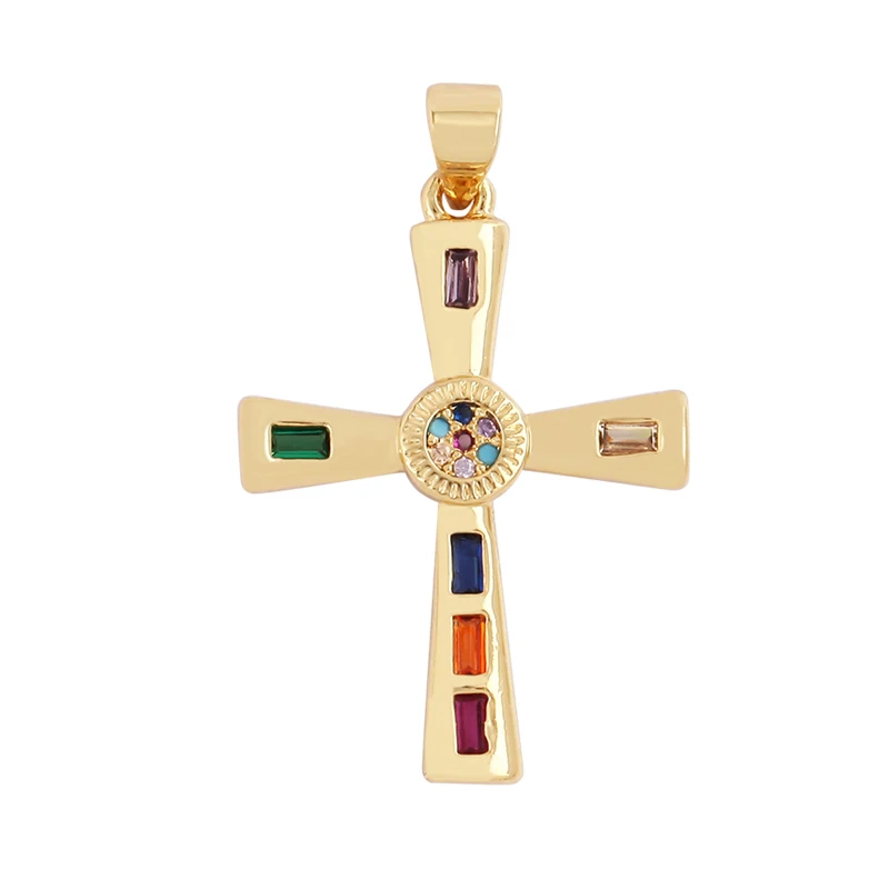 Home > Cross Religious Style Charm Pendant,Gold Plated Inlaid Colorful Cubic Zirconia Jewelry Necklace Bracelet Accessories Supply M51