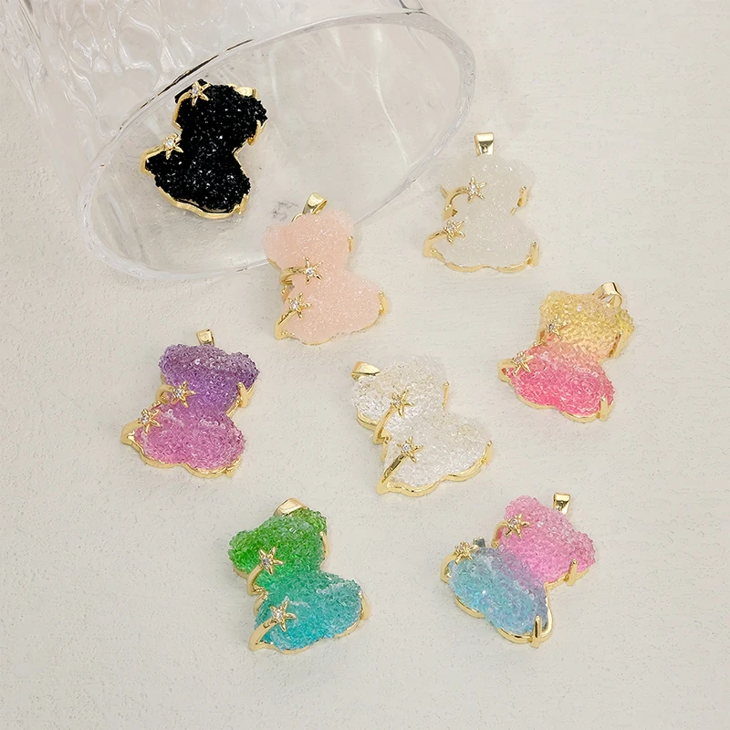 Home > Pendants and charms > Cute Bear Animal Charm Pendant Inlaid Colourful Resin,Real 18K Gold Plated Jewelry Necklace Bracelet DIY Making Supplies K86